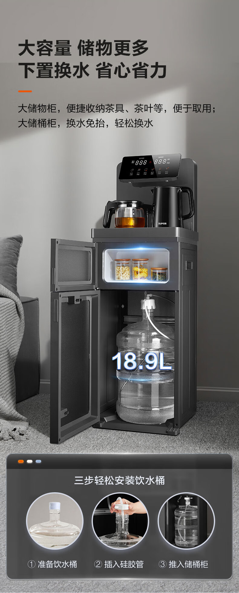 商品名称: 苏泊尔(SUPOR)ZMD安心系列 新款家用高端饮水机 遥控智能下置水桶全自动控温多功能茶吧机SW-CBJ53C SW-CBJ53C/台