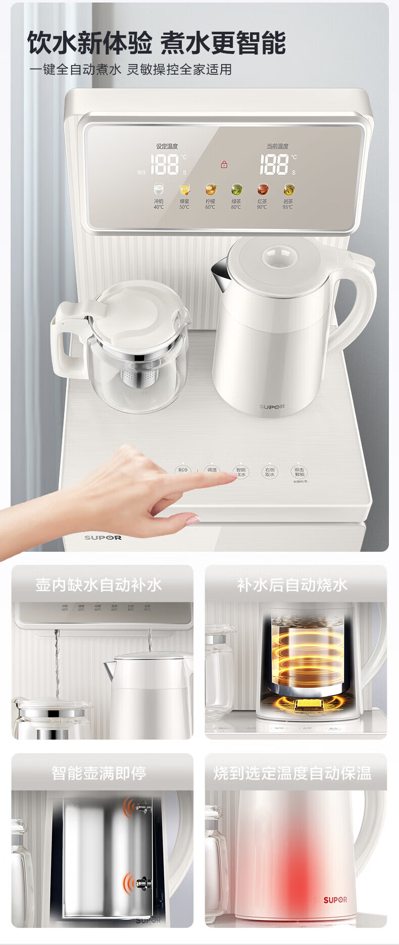 家用电器  > 生活电器  > 茶吧机  >  苏泊尔/SUPOR  >  苏泊尔茶吧机饮水机家用一体下置水桶升级防溢烧水壶多段调温遥控全自动多功能泡茶机 升级智能 SW-CBJ10 SW-CBJ10/个