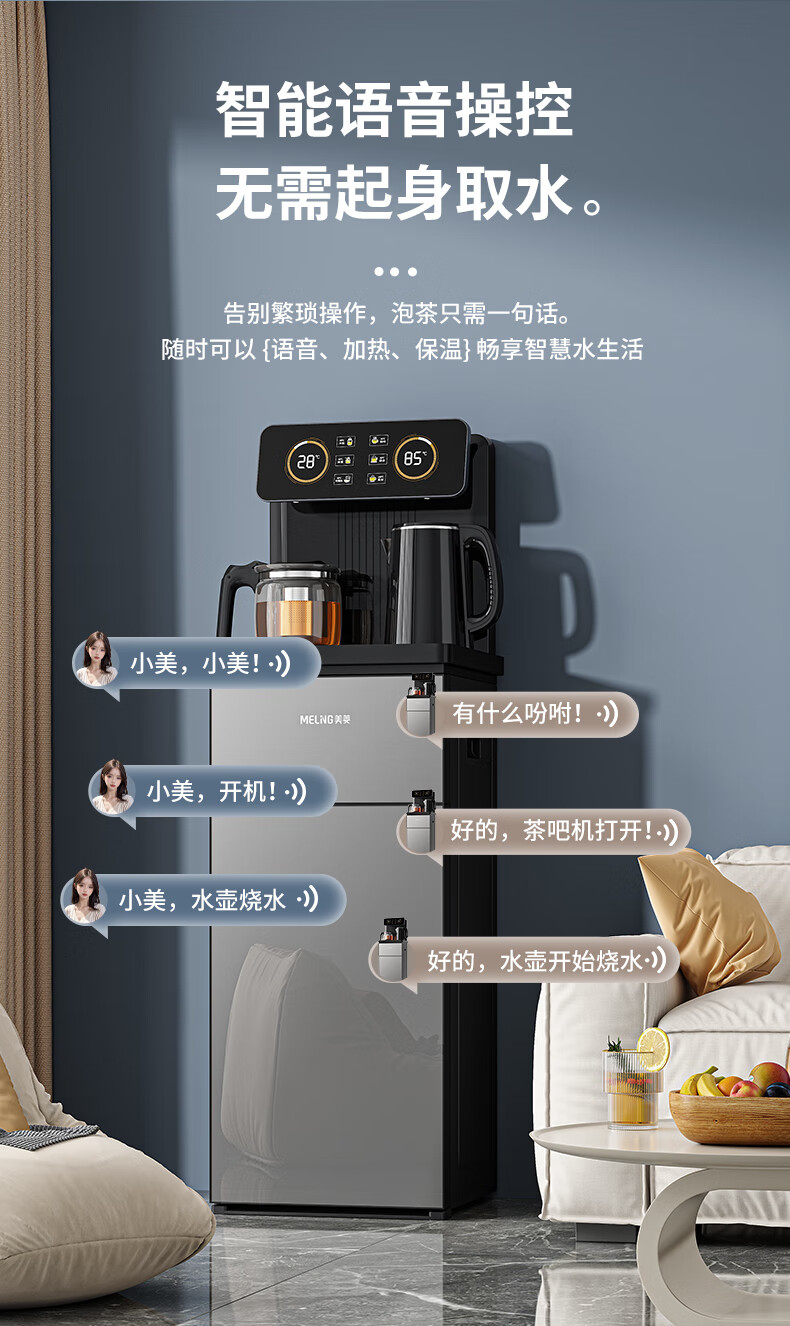 家用电器  > 生活电器  > 茶吧机  >  美菱/MeLng  >  美菱(MeiLing)智能遥控升级语音款茶吧机家用饮水机制冷制热一键选温自主上水立式泡茶机MY-DA3919Bpro MY-DA3919Bpro/台