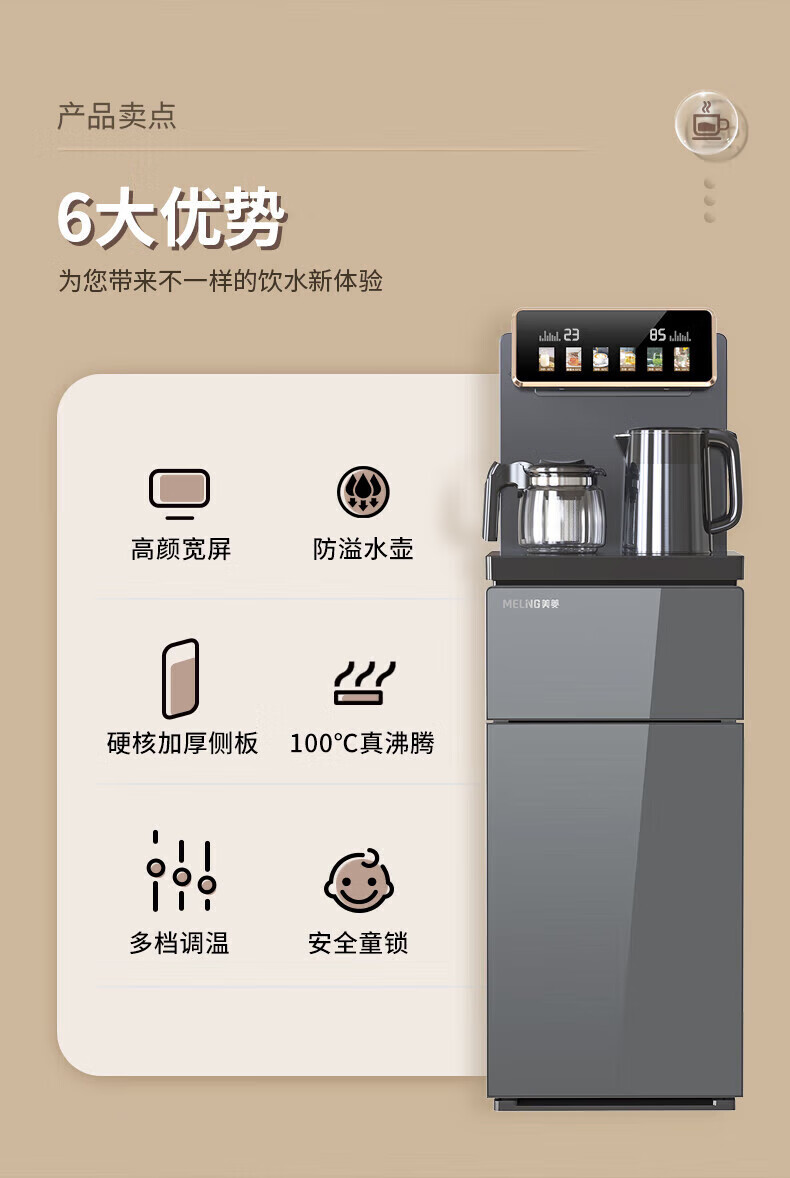 • 商品名称:美菱(MEILNG)多功能遥控家用办公室两边出水饮水机立式下置水桶茶 【厚板】MY-A071【童锁+防溢+遥控】 温热型 MY-A071/台