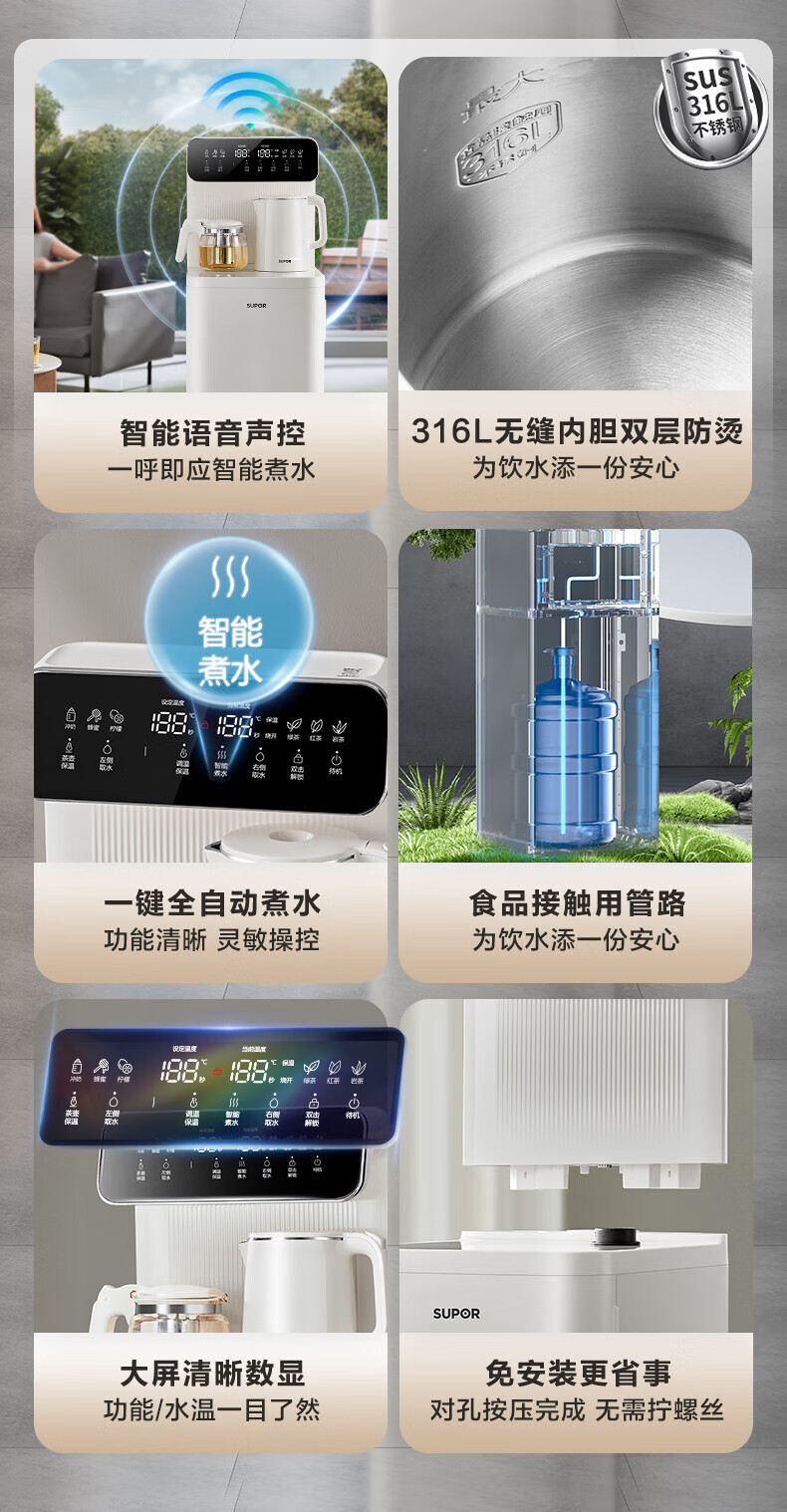 家用电器  > 生活电器  > 茶吧机  >  苏泊尔/SUPOR  >  苏泊尔茶吧机饮水机家用一体下置水桶升级防溢烧水壶多段调温遥控全自动多功能泡茶机 升级智能 SW-CBJ10 SW-CBJ10/个