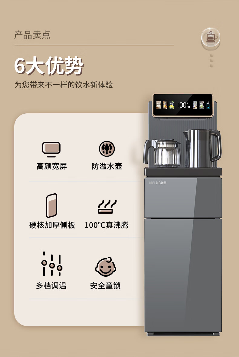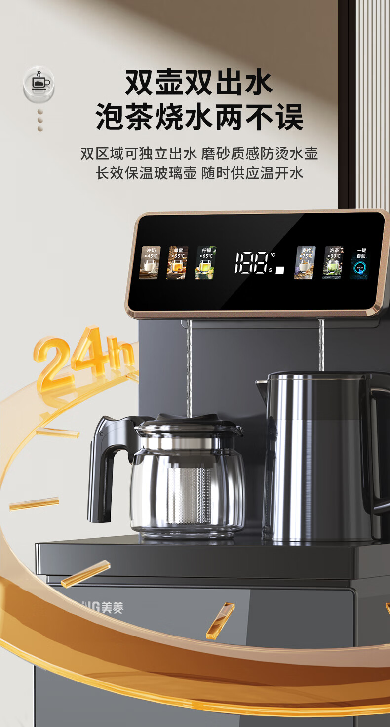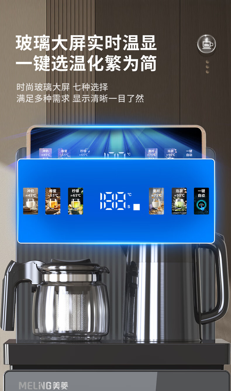 家用电器  > 生活电器  > 茶吧机  >  美菱/MeLng  >  美菱茶吧机家用立式饮水机彩屏触控温显多档调温双壶配置防溢防干烧304不锈钢烧水壶ZMD系列MY-A071 MY-A071/台