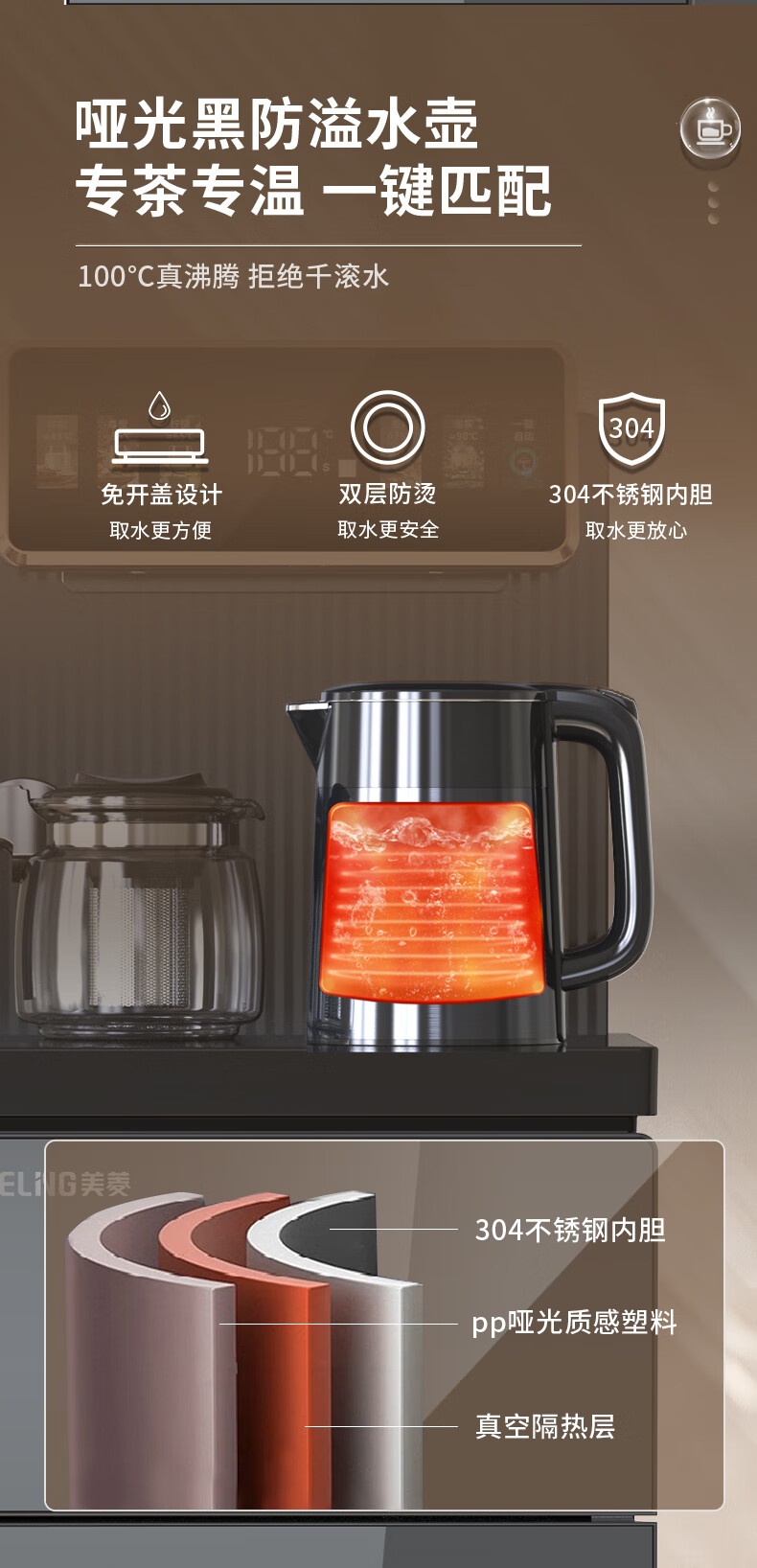 • 商品名称:美菱茶吧机家用立式饮水机彩屏触控温显多档调温双壶配置防溢防干烧304不锈钢烧水壶ZMD系列MY-A071 MY-A071/台