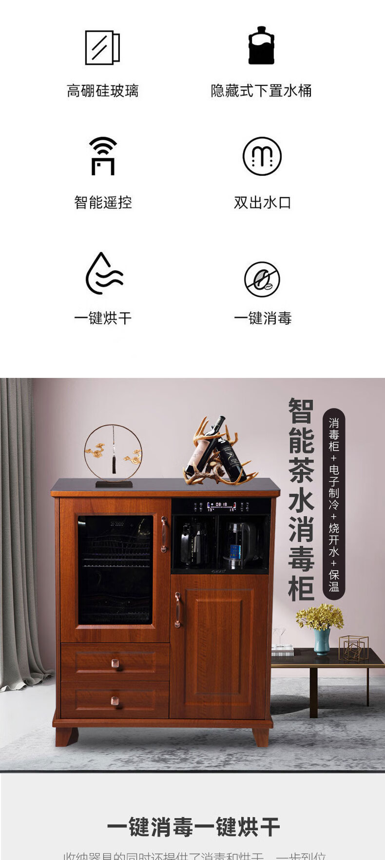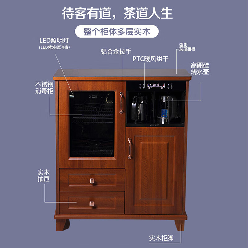 • 商品名称:茶之坊 ST-617 现代轻奢风商用办公室实木茶吧机带消毒柜冰温热三用全自动饮水机 触控遥控一体黄檀色 ST-617/台