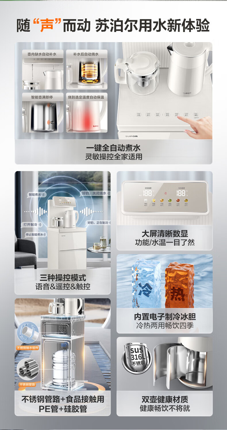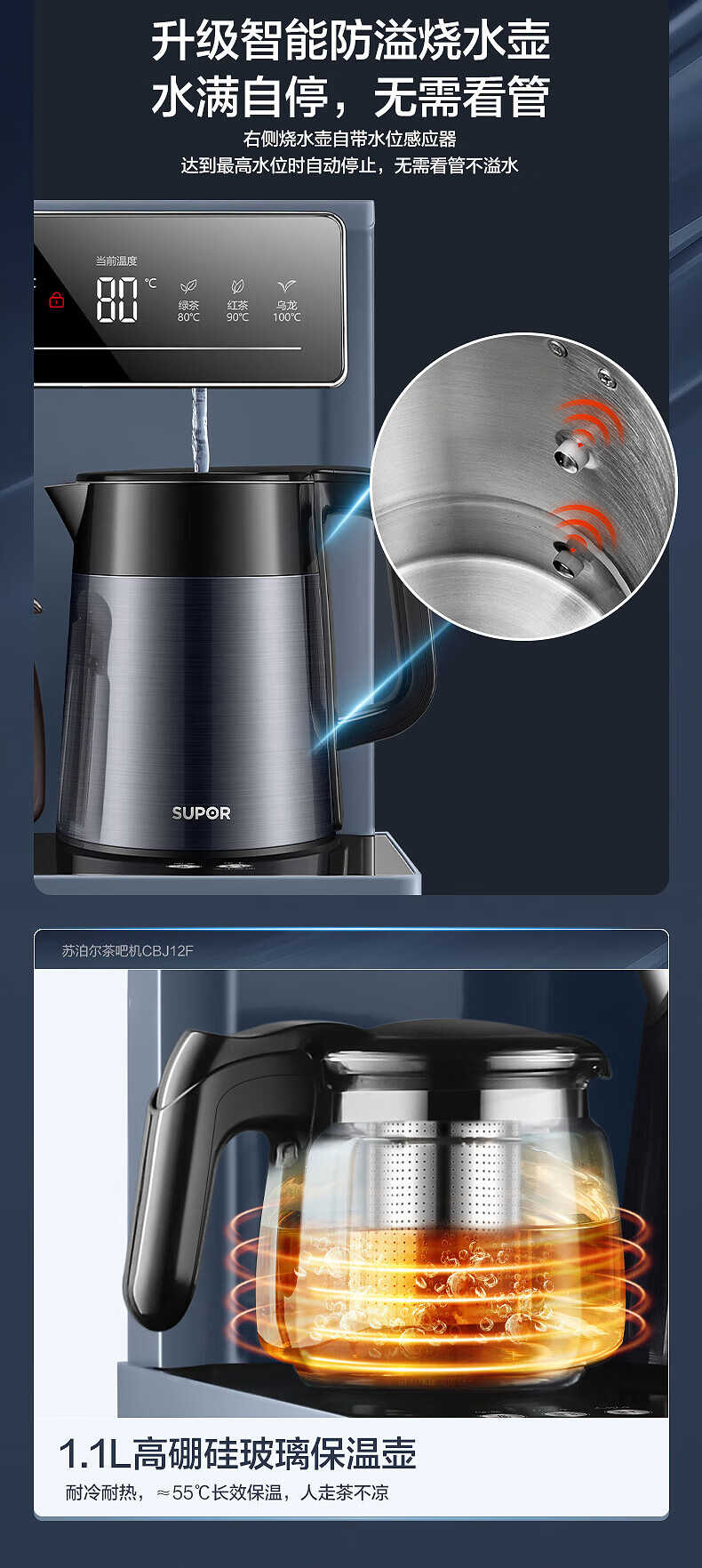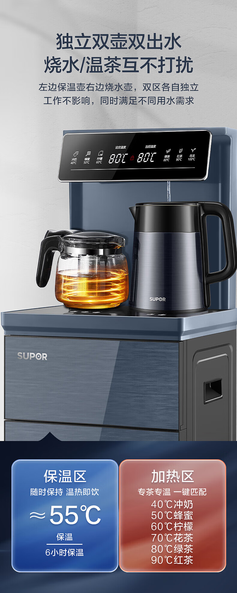 家用电器  > 生活电器  > 茶吧机  >  苏泊尔/SUPOR  >  苏泊尔茶吧机饮水机家用一体下置水桶升级防溢烧水壶多段调温遥控全自动多功能泡茶机 升级智能 SW-CBJ10 SW-CBJ10/个