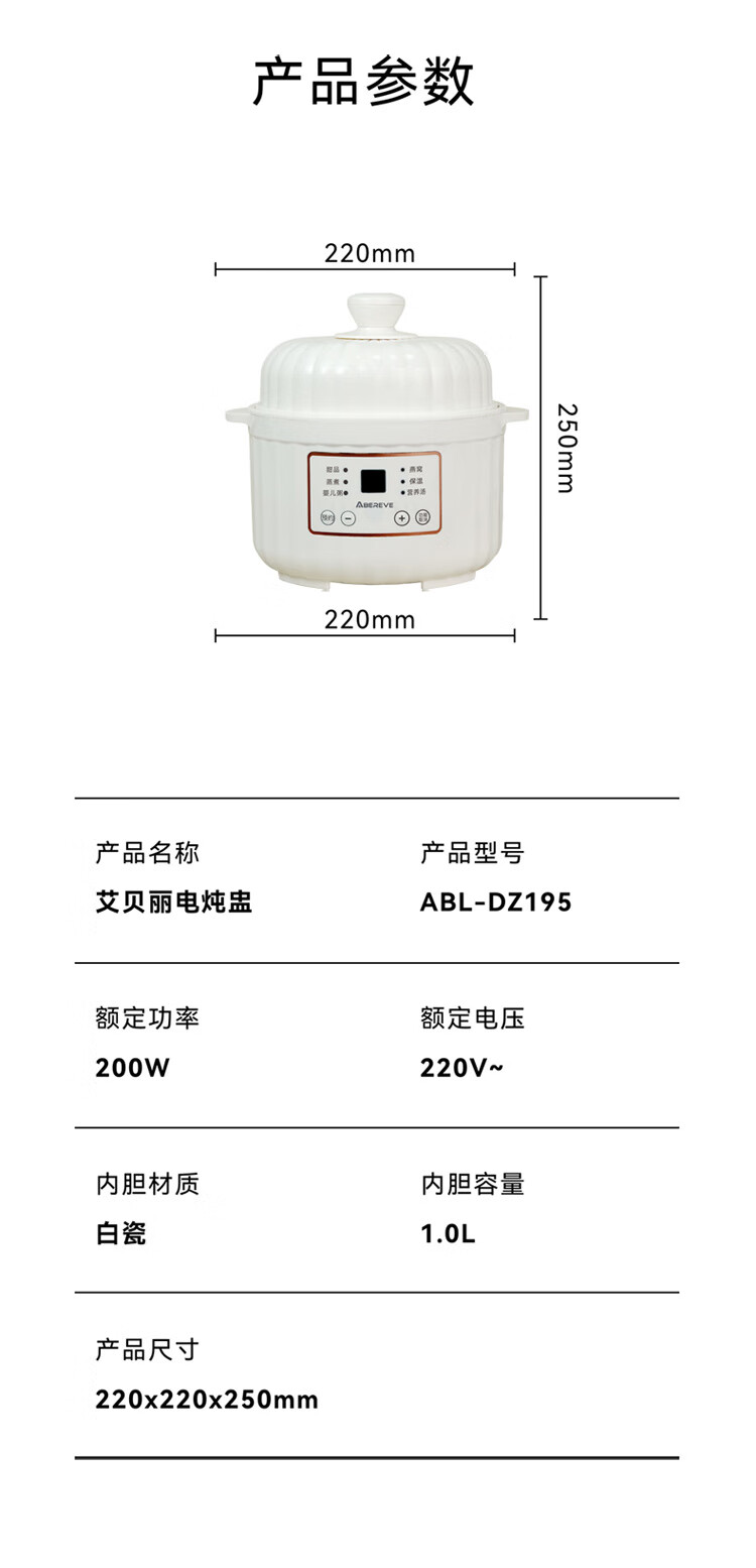 商品名称: 艾贝丽电炖盅电煮锅ABL-DZ195 ABL-DZ195/台