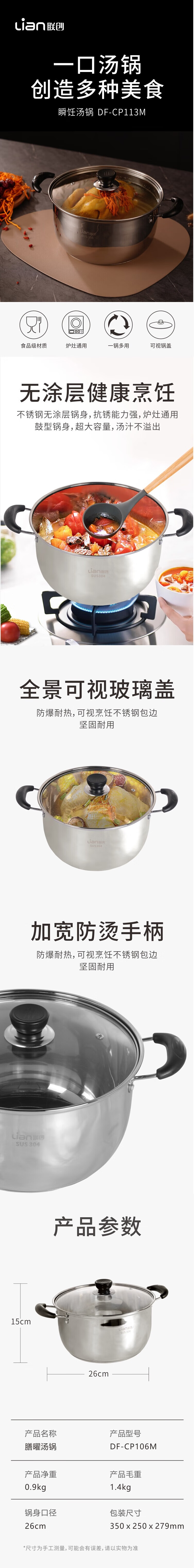 商品名称: 联创(Lian)雅索汤锅 DF-CP105M DF-CP105M/个