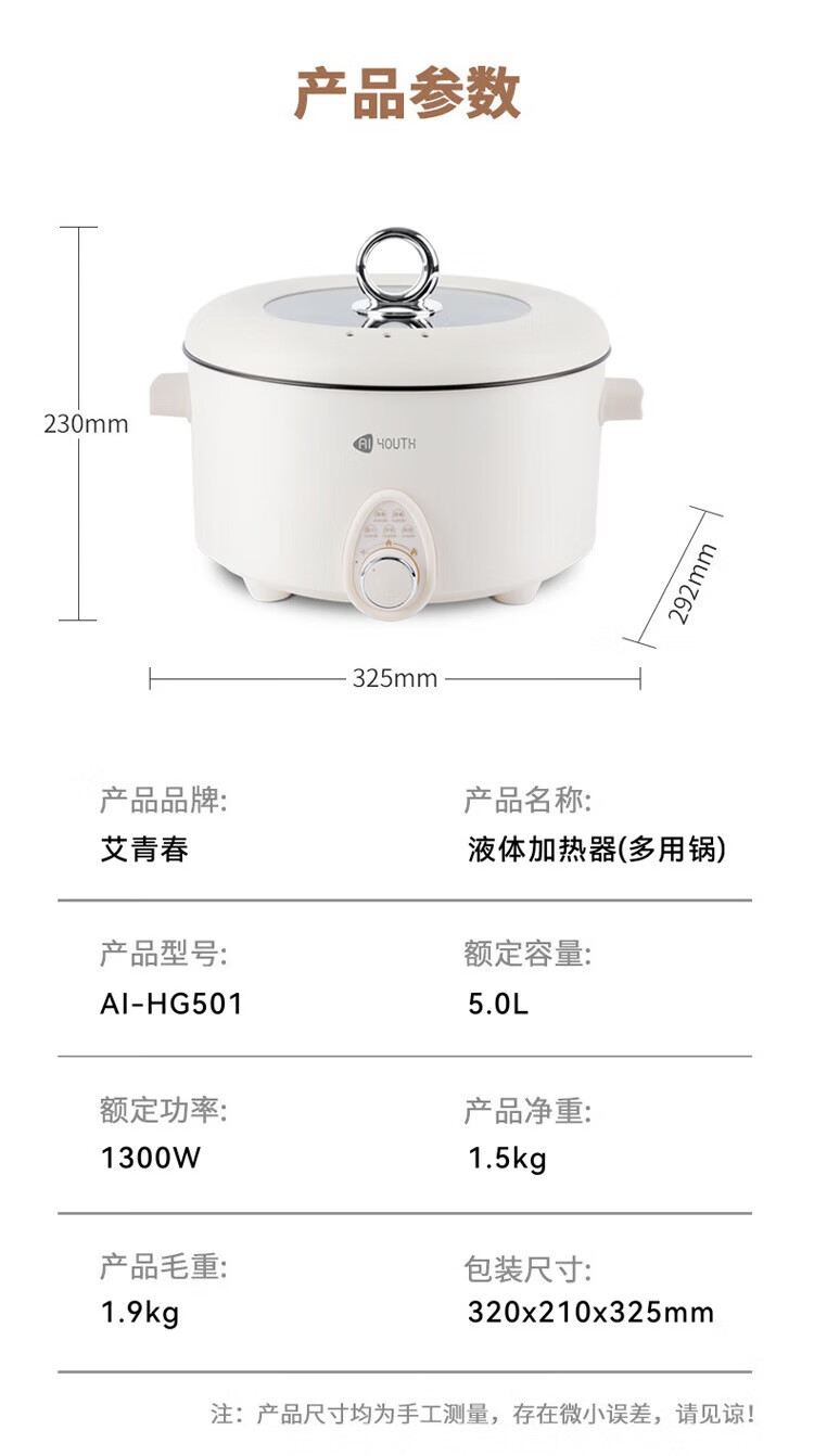 • 商品名称:艾青春(AIYOUTH)5L电火锅 AI-HG501 AI-HG501/个