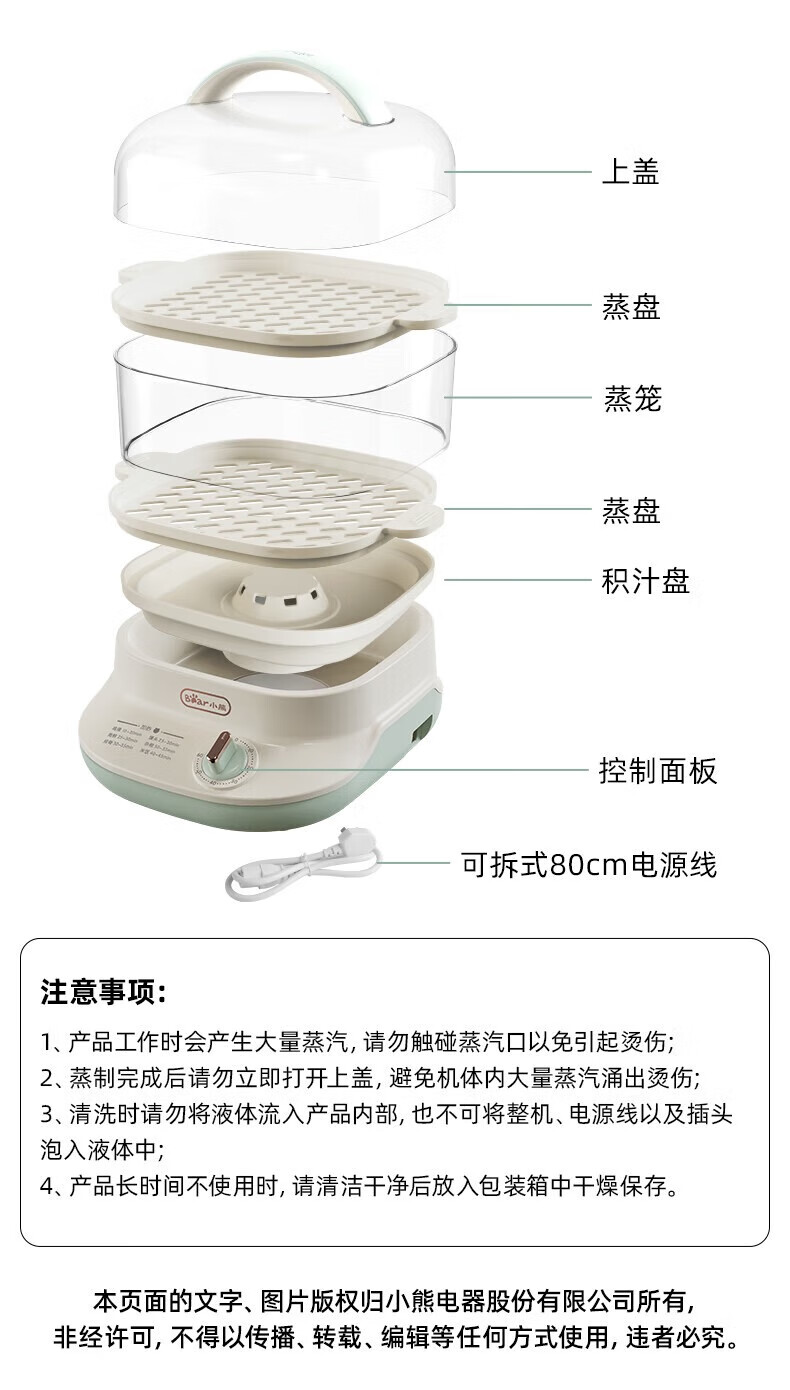• 商品名称:小熊电蒸锅DZG-C60Q8 DZG-C60Q8/个