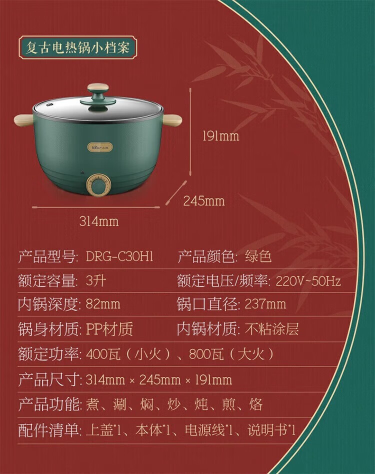 商品名称: 小熊电热锅 DRG-H12U3 DRG-H12U3/个