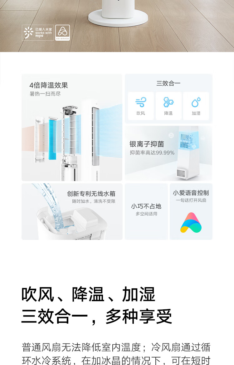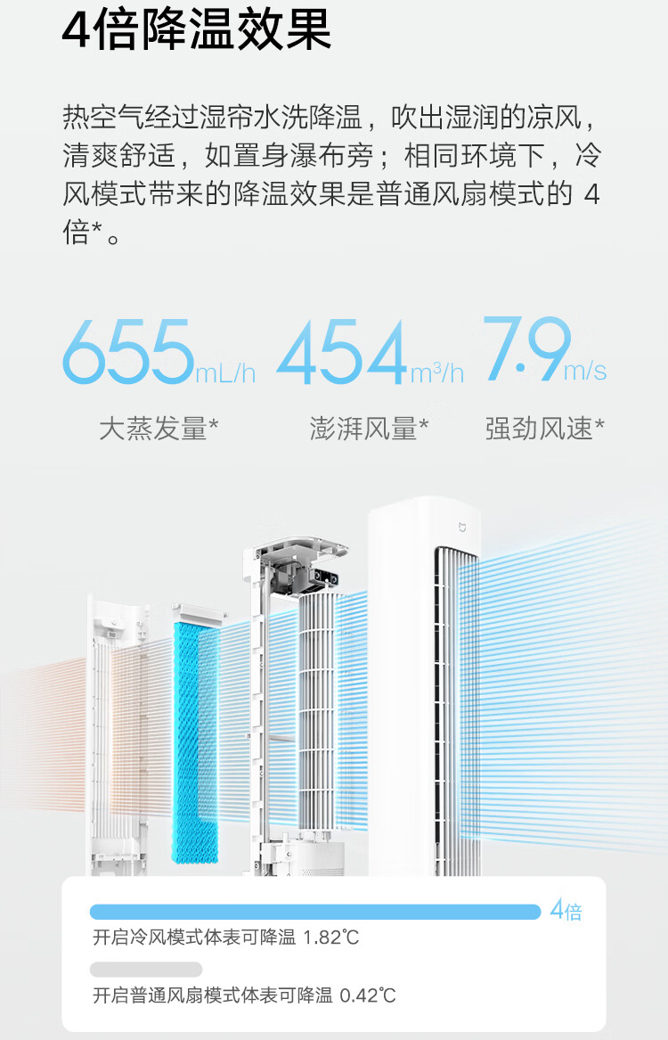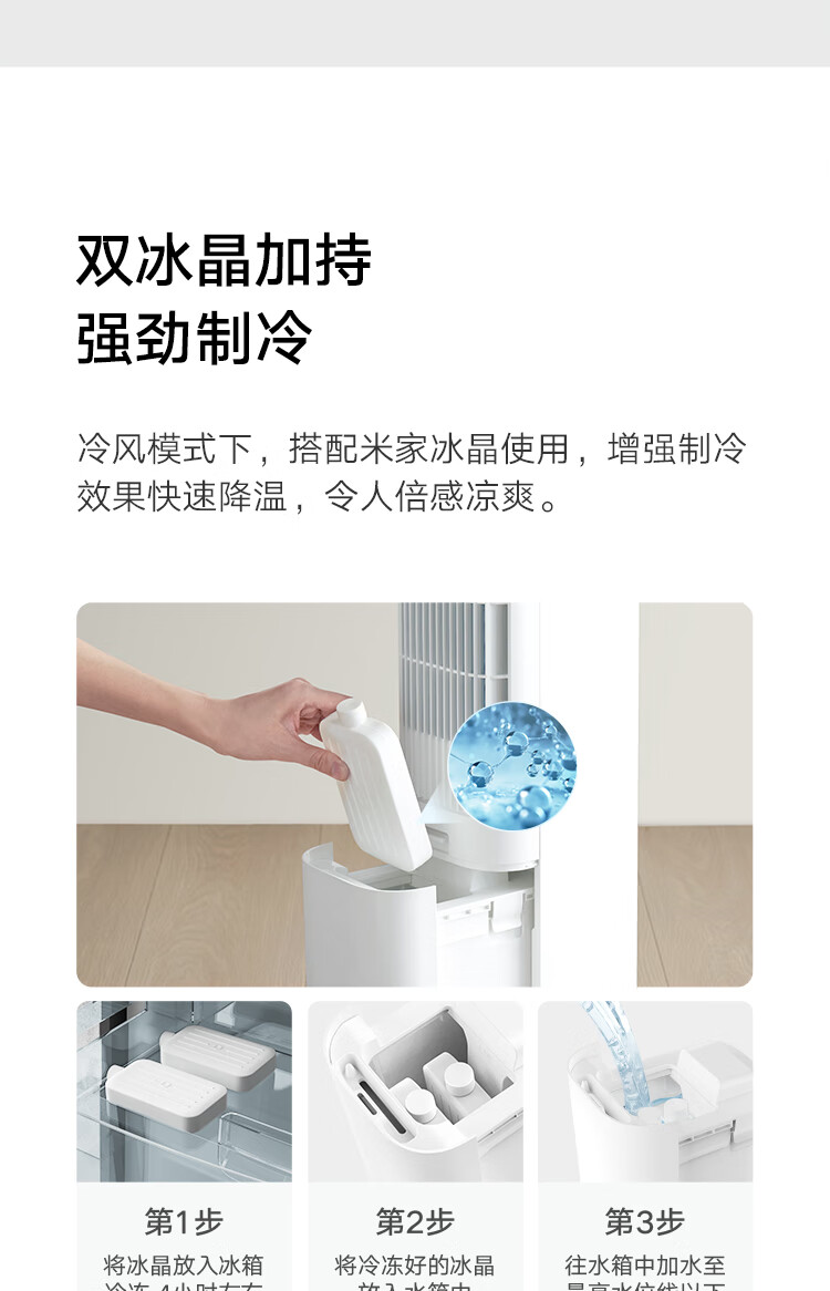 • 商品名称:米家小米智能冷风扇家用空调扇 心动季水冷塔扇家用冰晶制冷扇冷气扇 吹风降温加湿无叶塔扇ZFSLFS01DM ZFSLFS01DM/台
