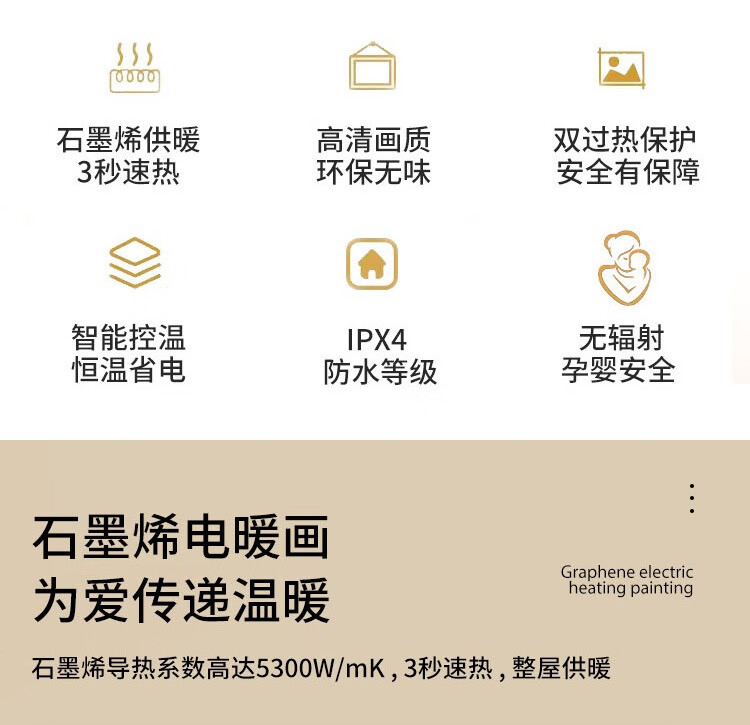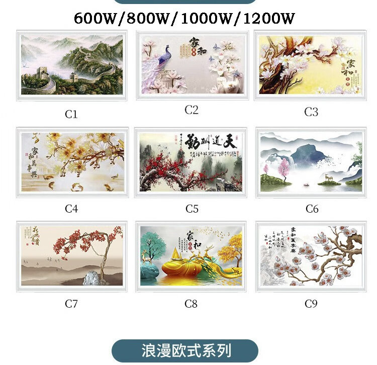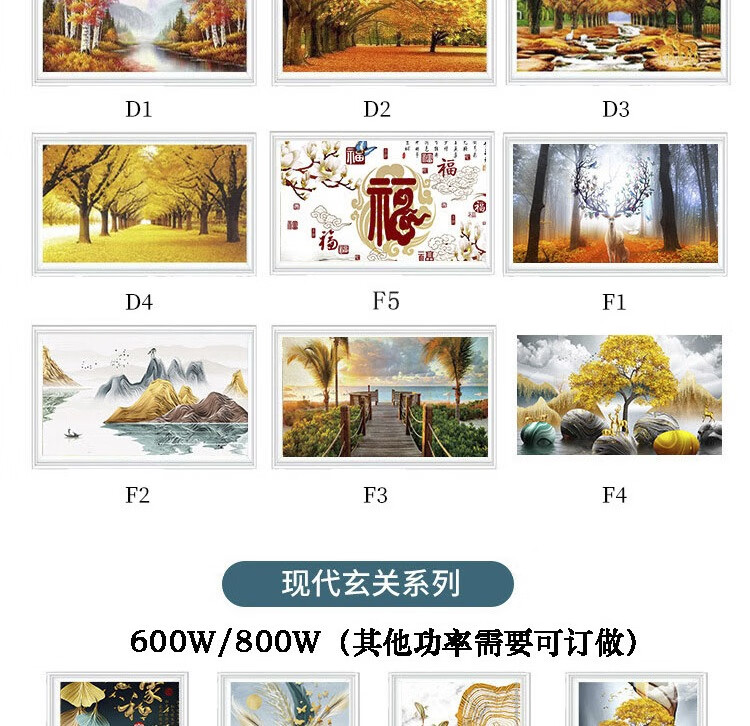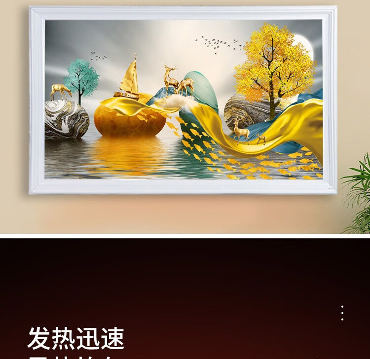 • 商品名称:百旗石墨烯壁画式电热取暖器 省电壁挂式墙暖壁画电热画电暖画电热板 招财金鹿(横)1000W 1000W/台