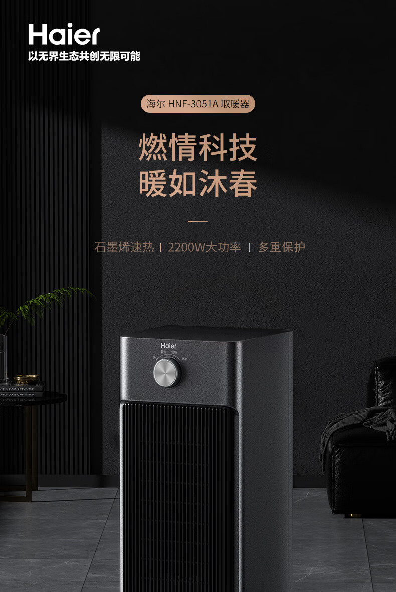 海尔(HAIER)取暖器家用暖风机卧室办公电暖器石墨烯速热热风机轻音电暖气节能净化型省烤火炉 HNF-3051A HNF-3051A/个