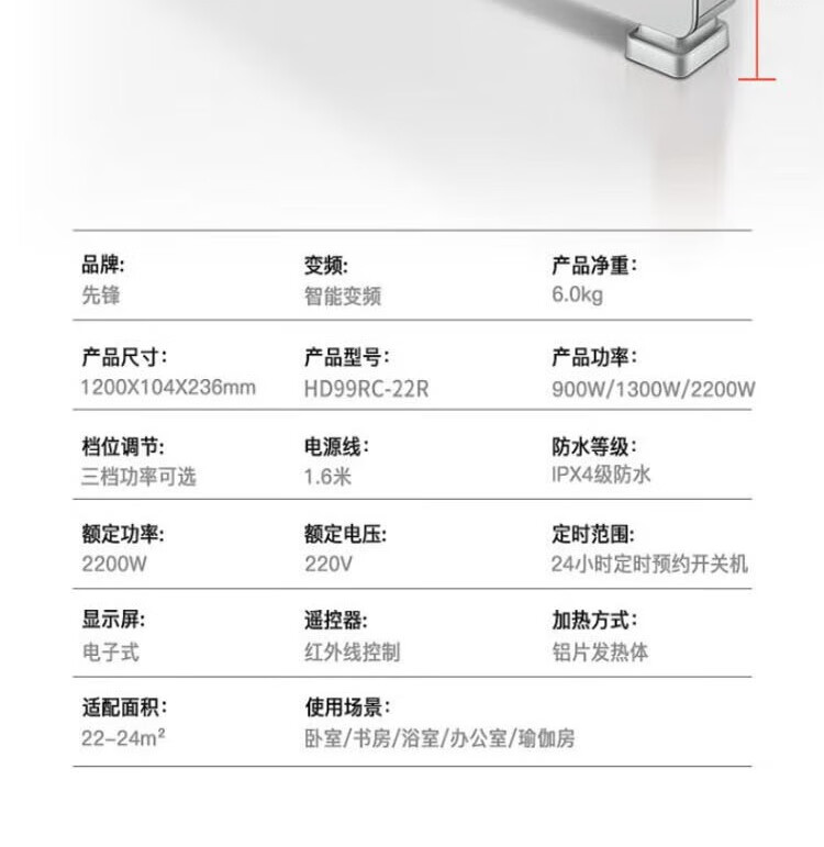 家用电器  > 生活电器  > 取暖器  >  先锋/SINGFUN  >  先锋(SINGFUN) 踢脚线取暖器1米2浴室热风机暖风机干衣烘衣电暖器遥控防水地暖 HD99RC-22R HD99RC-22R/台