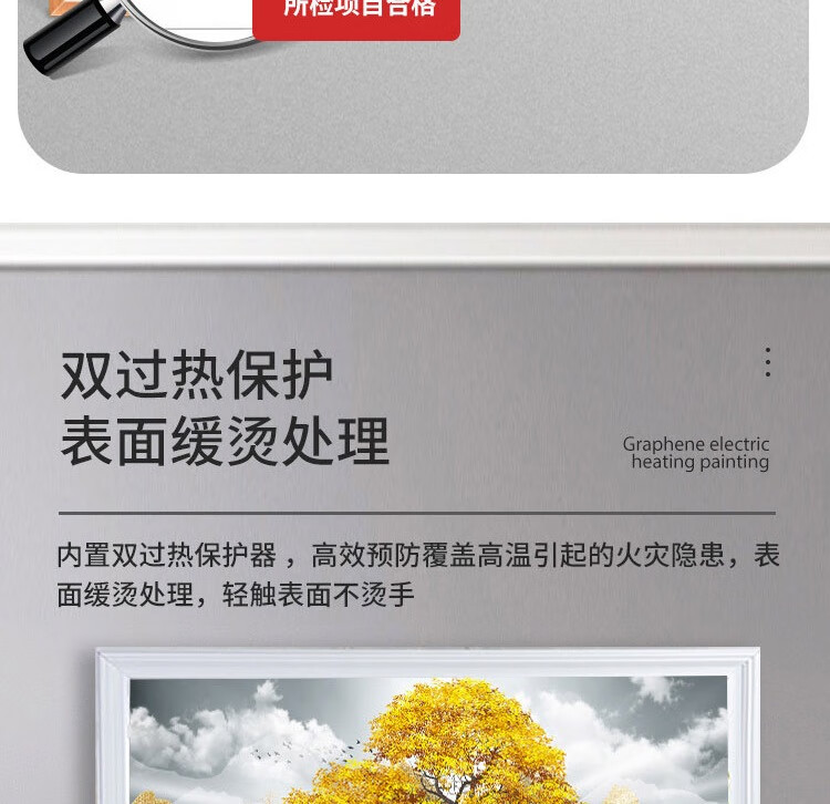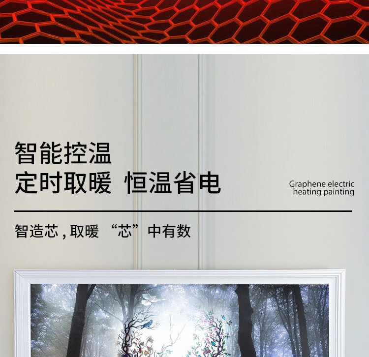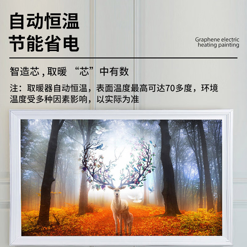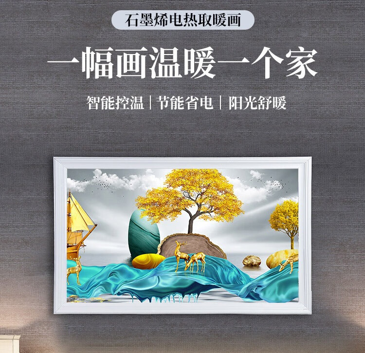 • 商品名称:百旗石墨烯壁画式电热取暖器 省电壁挂式墙暖壁画电热画电暖画电热板 招财金鹿(横)1000W 1000W/台