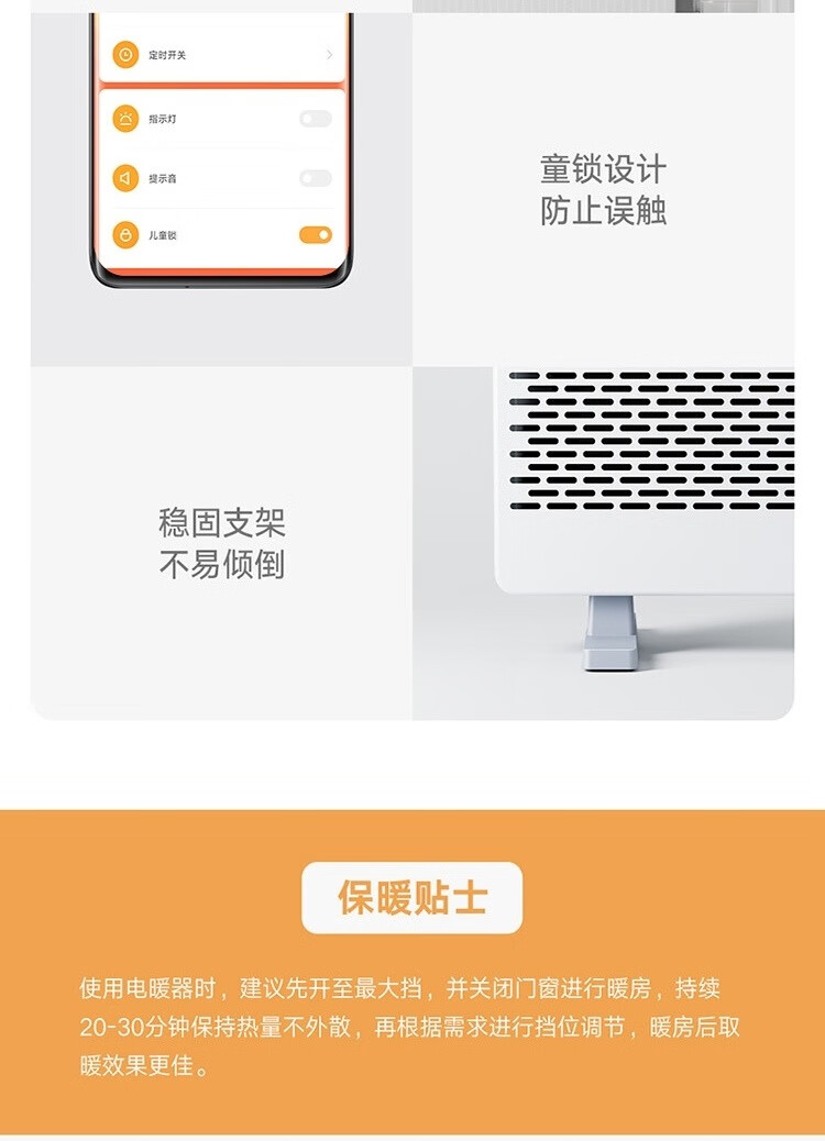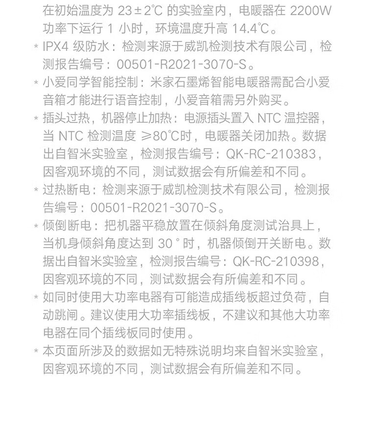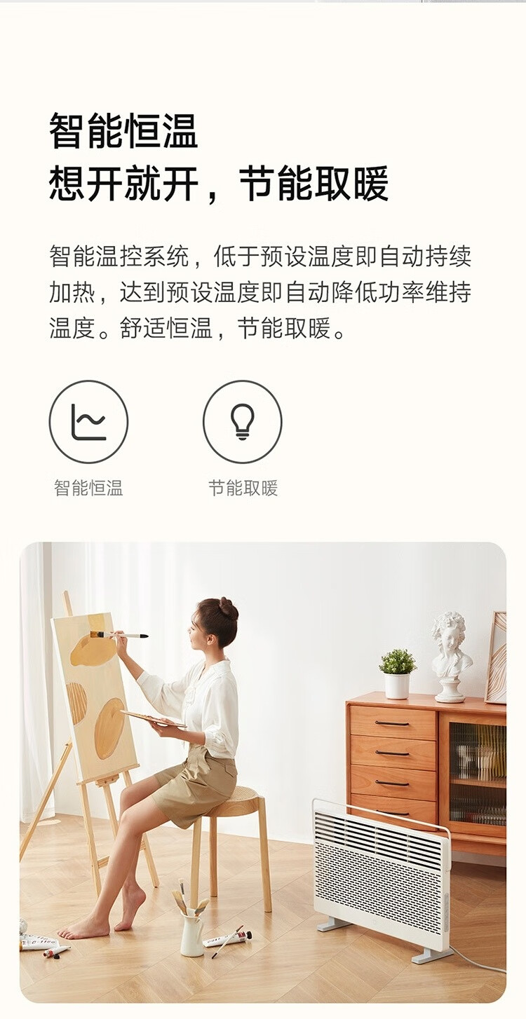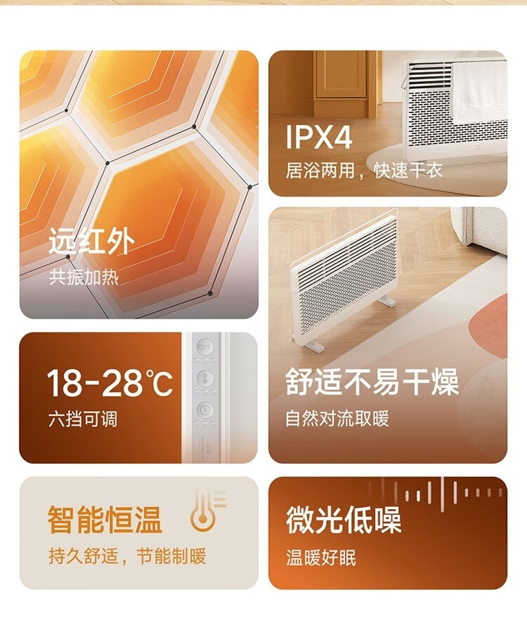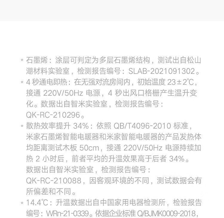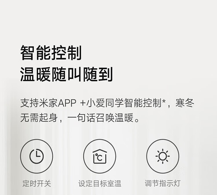 • 商品名称:小米石墨烯智能电暖器 取暖器 电暖气片 远红外共振加热 IPX4防水居浴两用 微光低噪 白色 KRDNQ04ZM/个