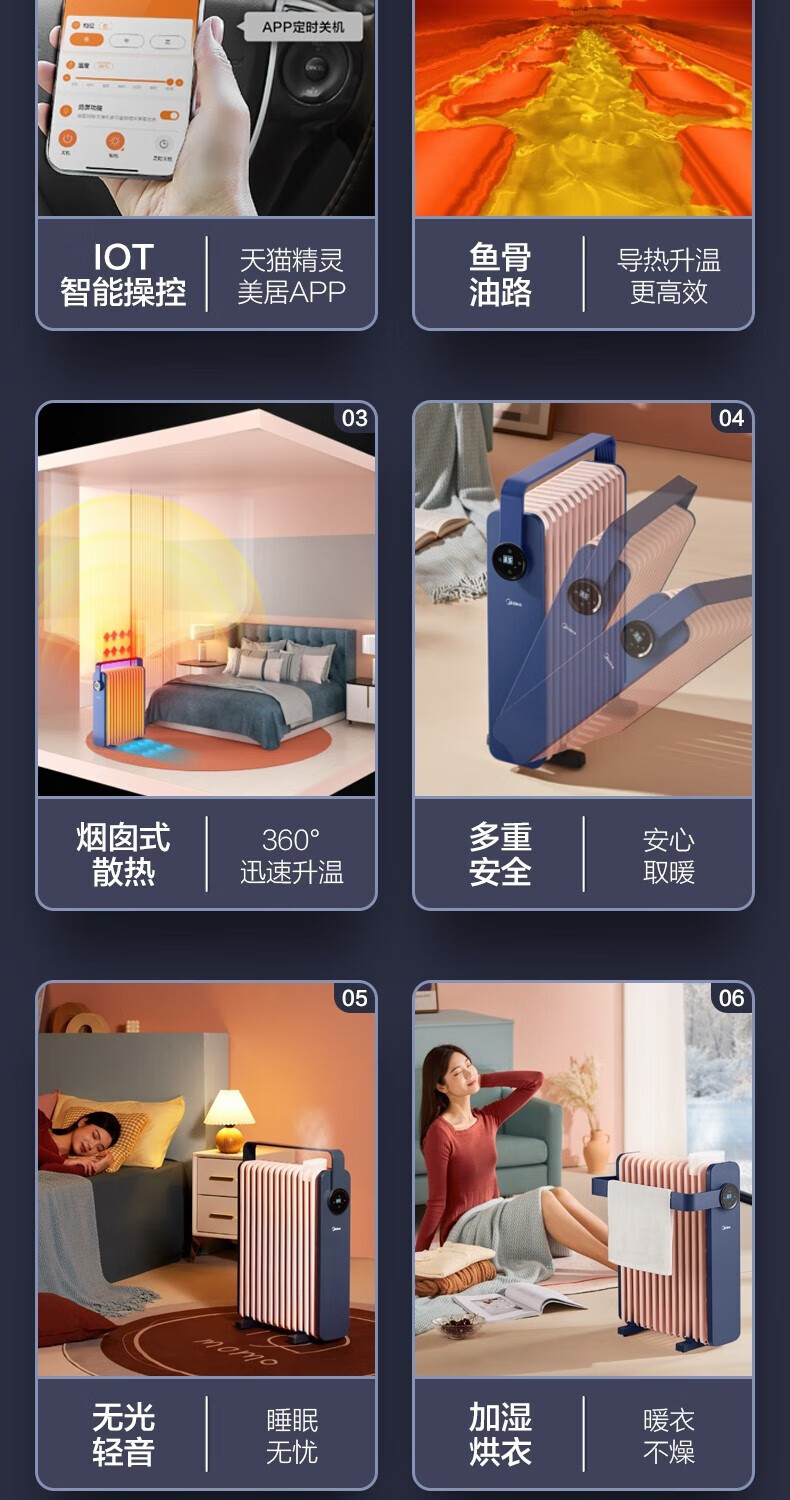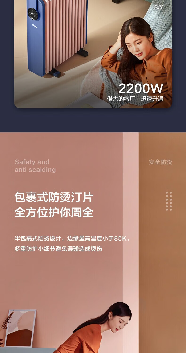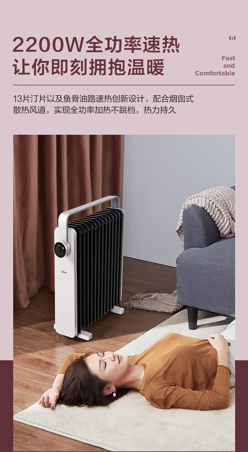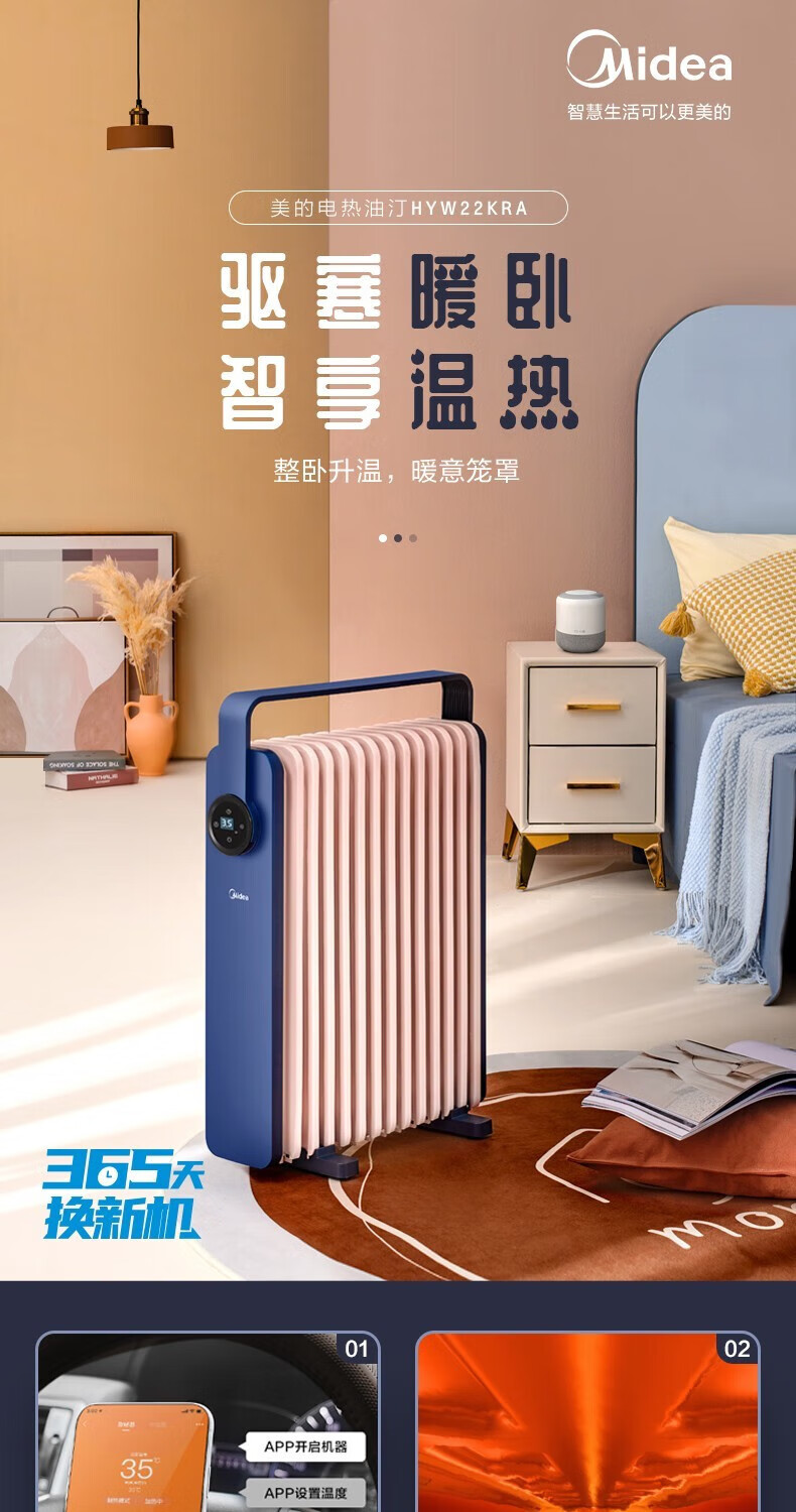 • 商品名称:美的(Midea)取暖器油汀智能电暖器家用节能省电大面积速热油丁电暖气加湿油酊薄空蓝基础款 HYW22KA HYW22KA/个