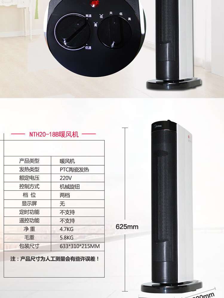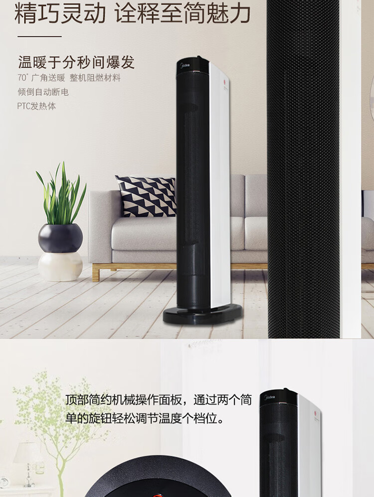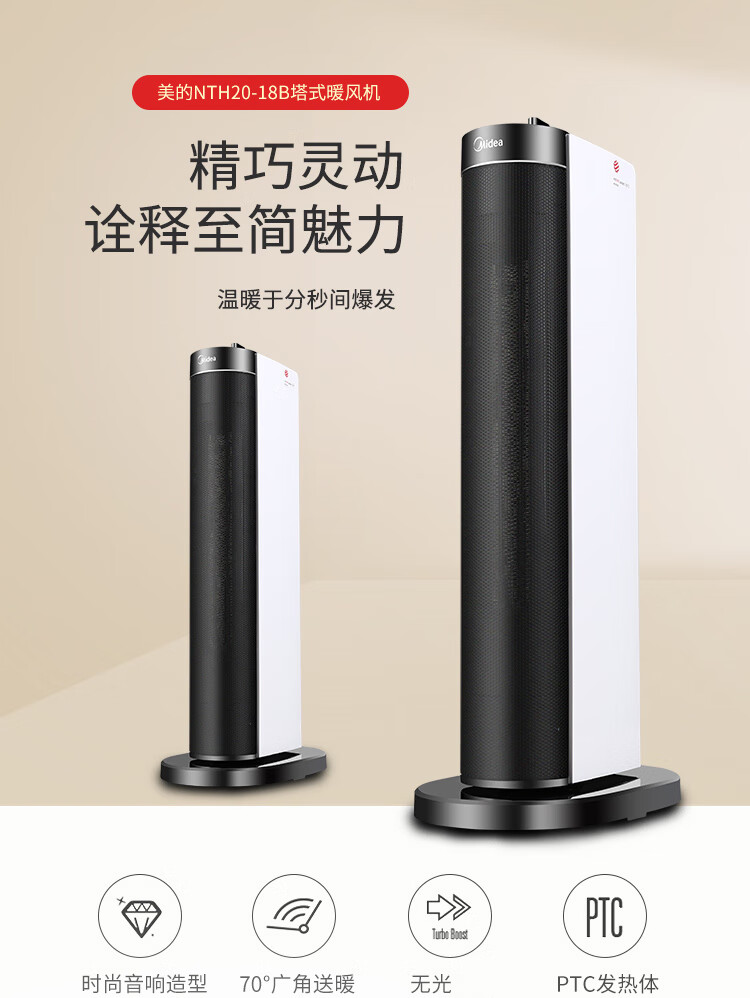 商品名称: 美的(Midea)电暖风机器取暖器立式家用电热五面室内办公室安静多功能速热落地式 NTH20-18B NTH20-18B/台