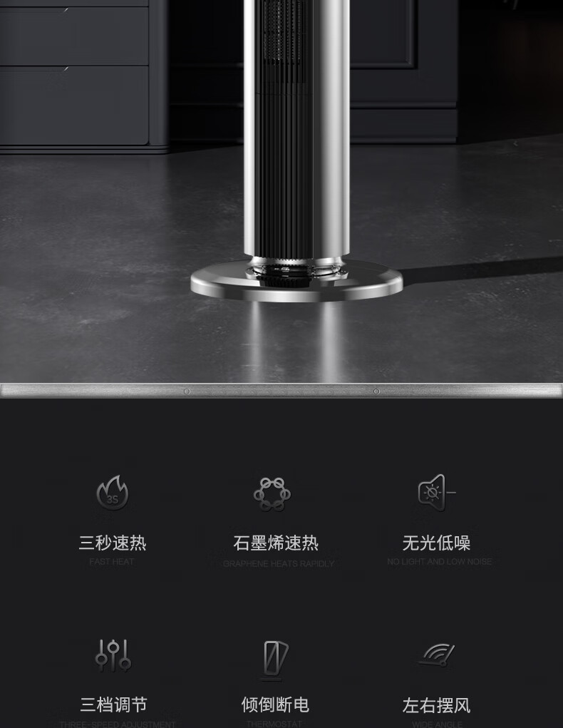 • 商品名称:海尔(HAIER)暖风机家用取暖器石墨烯立式电暖风浴室热风机冷暖风扇电暖气节能速热电暖器卧室炉 HNF-2254A HNF-2254A/个