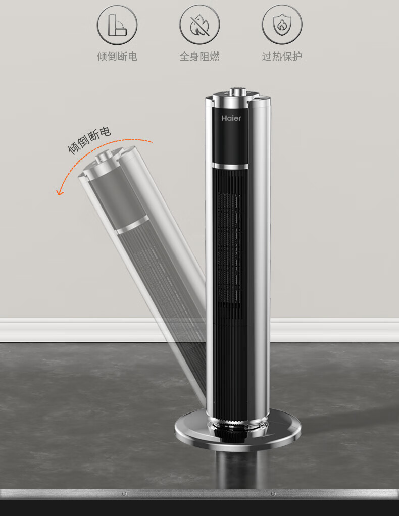海尔(HAIER)暖风机家用取暖器石墨烯立式电暖风浴室热风机冷暖风扇电暖气节能速热电暖器卧室炉 HNF-2254A HNF-2254A/个