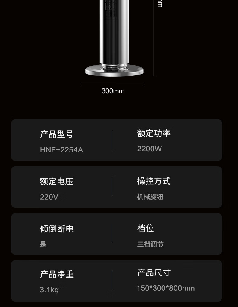 商品名称: 海尔(HAIER)暖风机家用取暖器石墨烯立式电暖风浴室热风机冷暖风扇电暖气节能速热电暖器卧室炉 HNF-2254A HNF-2254A/个