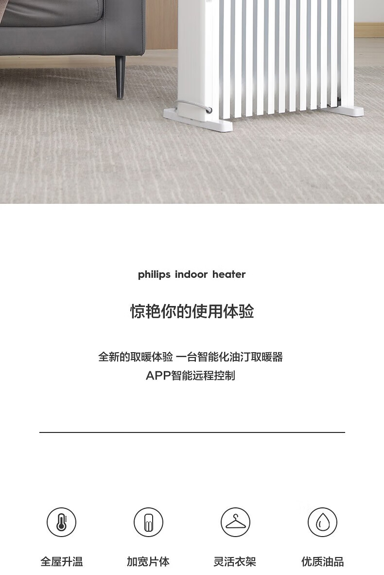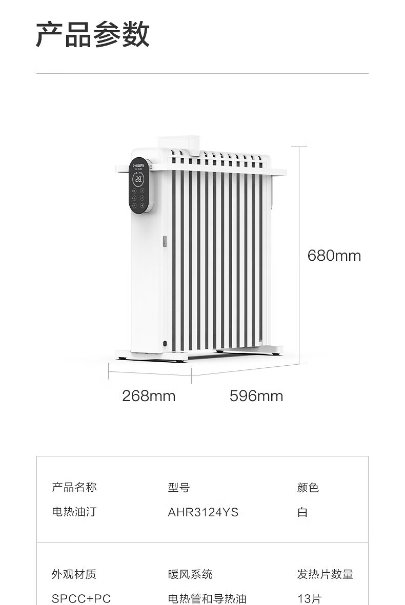 • 商品名称:PHILIPS飞利浦 取暖器家用暖风机电暖器电暖气片电油汀加宽防烫油丁速热干衣加湿油酊 机械款 AHR3124YA AHR3124YA/台