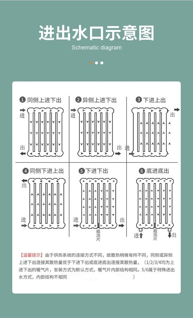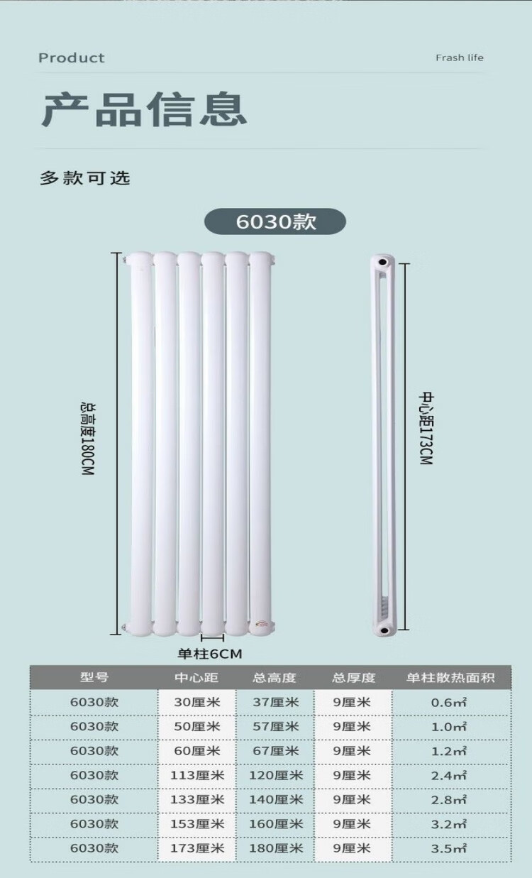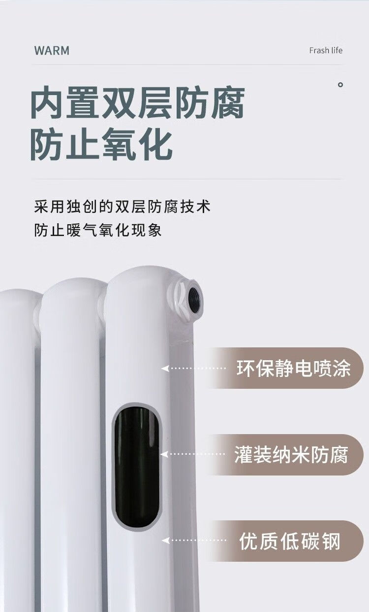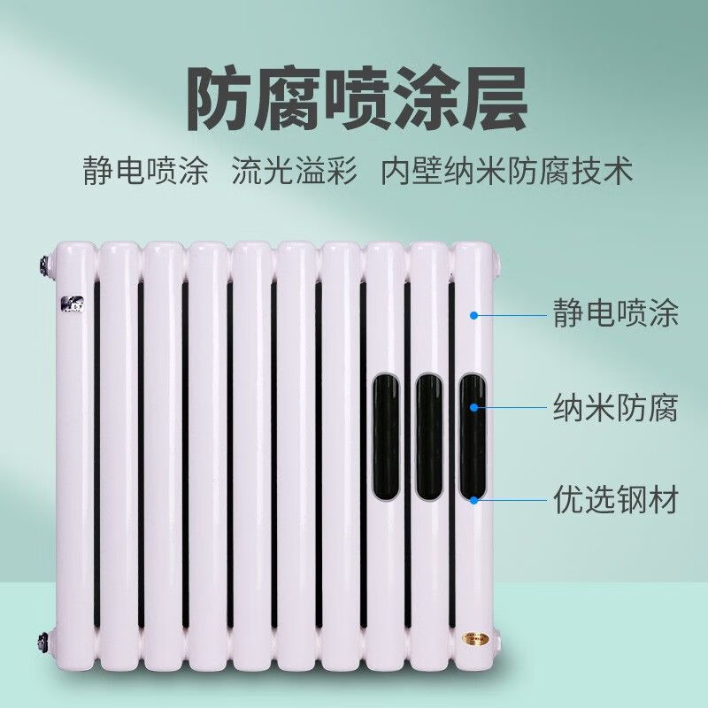 商品名称: 百成道暖气片家用钢制二注水暖散热器散热片壁挂式集中供暖天然气炉取暖5025型600中10柱一组 1/组