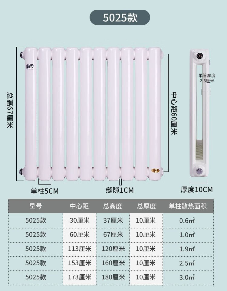• 商品名称:百成道暖气片家用钢制二注水暖散热器散热片壁挂式集中供暖天然气炉取暖5025型600中10柱一组 1/组