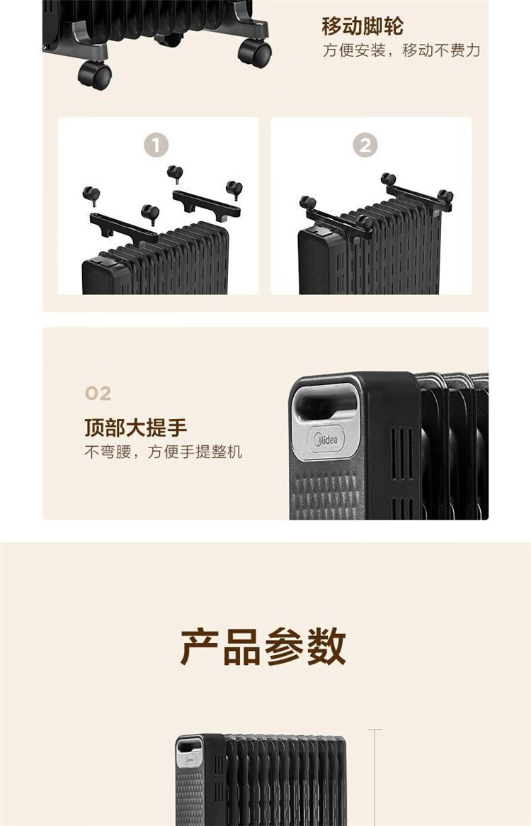商品名称: 美的(Midea) 电油汀取暖器家用卧室恒温油汀快速加热电暖炉油酊电暖 NYX-G1 NYX-G1/台