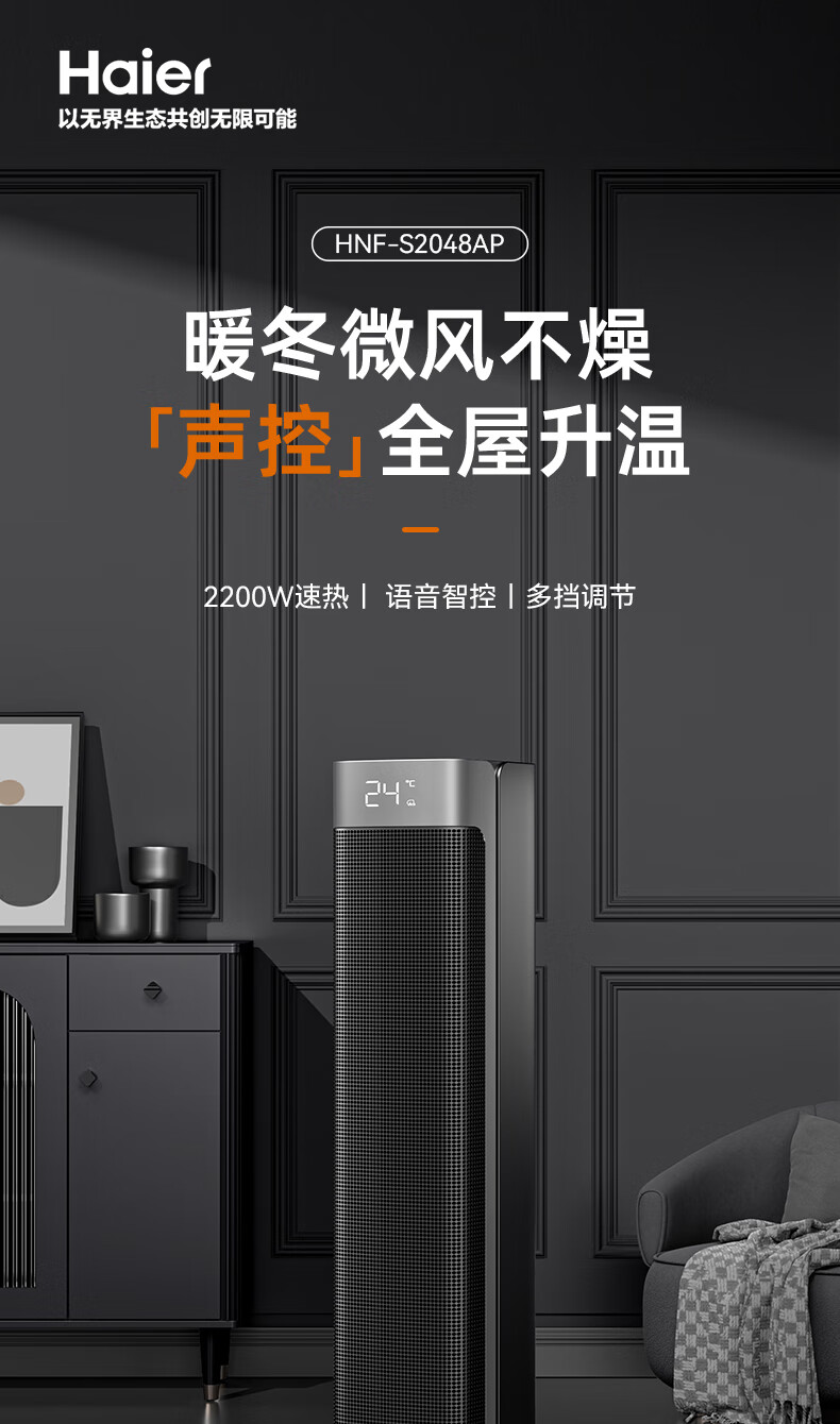 海尔(HAIER)取暖器家用暖风机强劲暖风电暖器大面积升温电暖气卧室客厅电暖风节能省电快热炉 HNF-S2048AP HNF-S2048AP/个