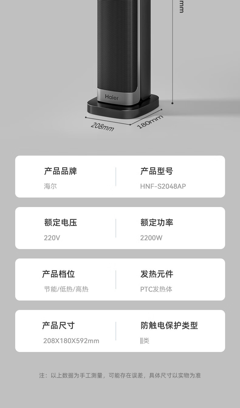• 商品名称:海尔(HAIER)取暖器家用暖风机强劲暖风电暖器大面积升温电暖气卧室客厅电暖风节能省电快热炉 HNF-S2048AP HNF-S2048AP/个