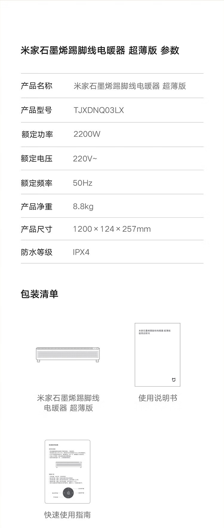 商品名称: 小米米家取暖器 石墨烯智能踢脚线 电暖器【三年质保】7cm机身 智能语音控制 防水 超薄版TJXDNQ03LX 超薄版TJXDNQ03LX/台