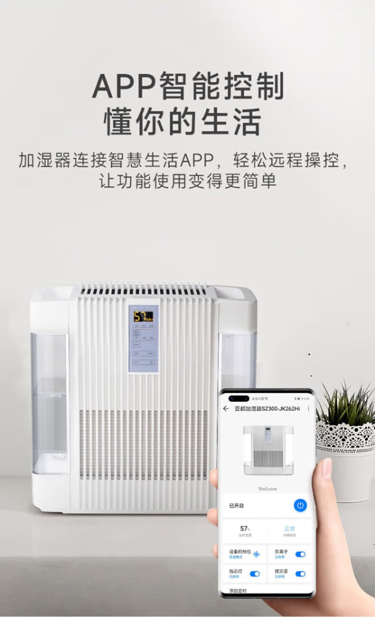 家用电器  > 生活电器  > 加湿器  >  亚都/YADU  >  亚都(YADU)加湿器 纯净型家用大容量轻音无雾办公室卧室净化恒湿大水箱SZ300-JK262(Hi) 白色 SZ300-JK262(Hi) /台