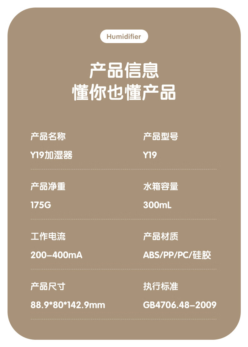 包装清单: 加湿器*1、数据线*1、说明书*1
