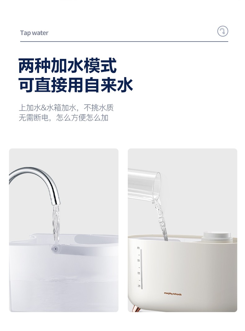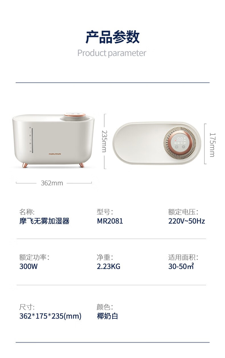 • 商品名称:摩飞电器(Morphyrichards)家用迷你加湿器卧室客厅办公室恒温加热蒸发无耗材孕妇婴儿智能调控自动加湿机 MR2081 无雾加湿器 MR2081/台