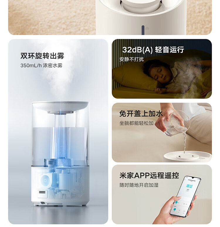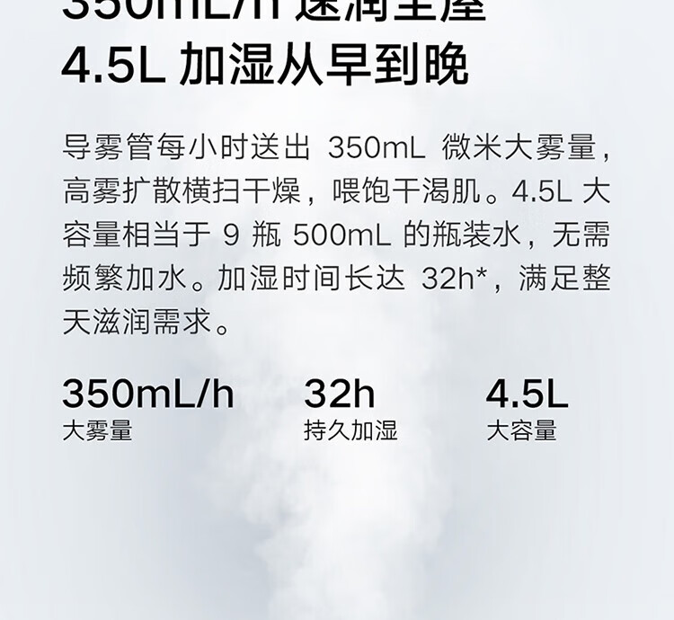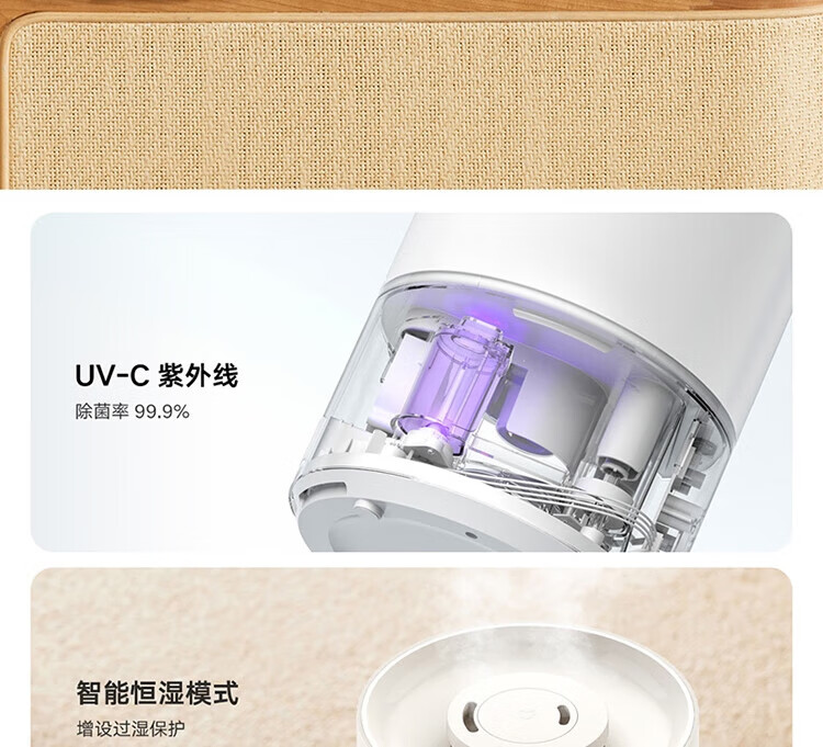 • 商品名称:小米米家智能除菌加湿器2 卧室家用办公室4.5L大容量杀菌大雾量 孕妇婴儿轻音低噪空气加湿 UV除菌净化 MJJSQ05DY/个