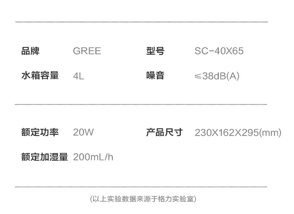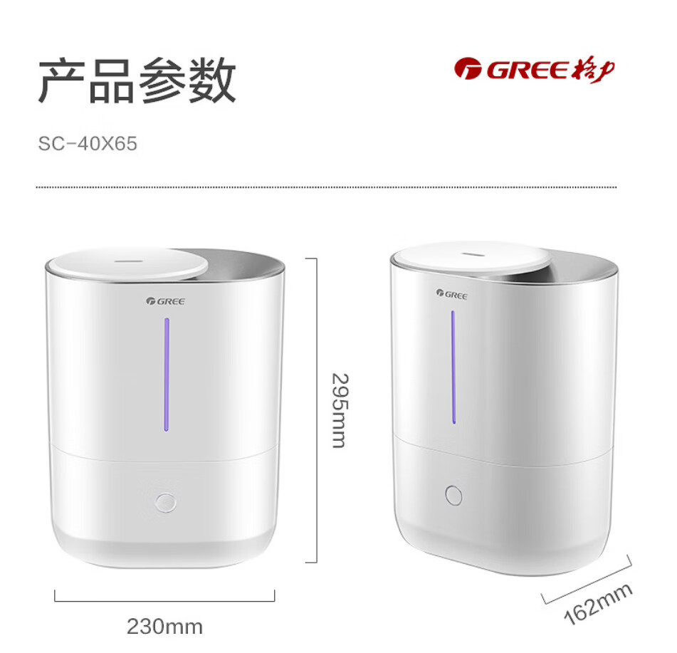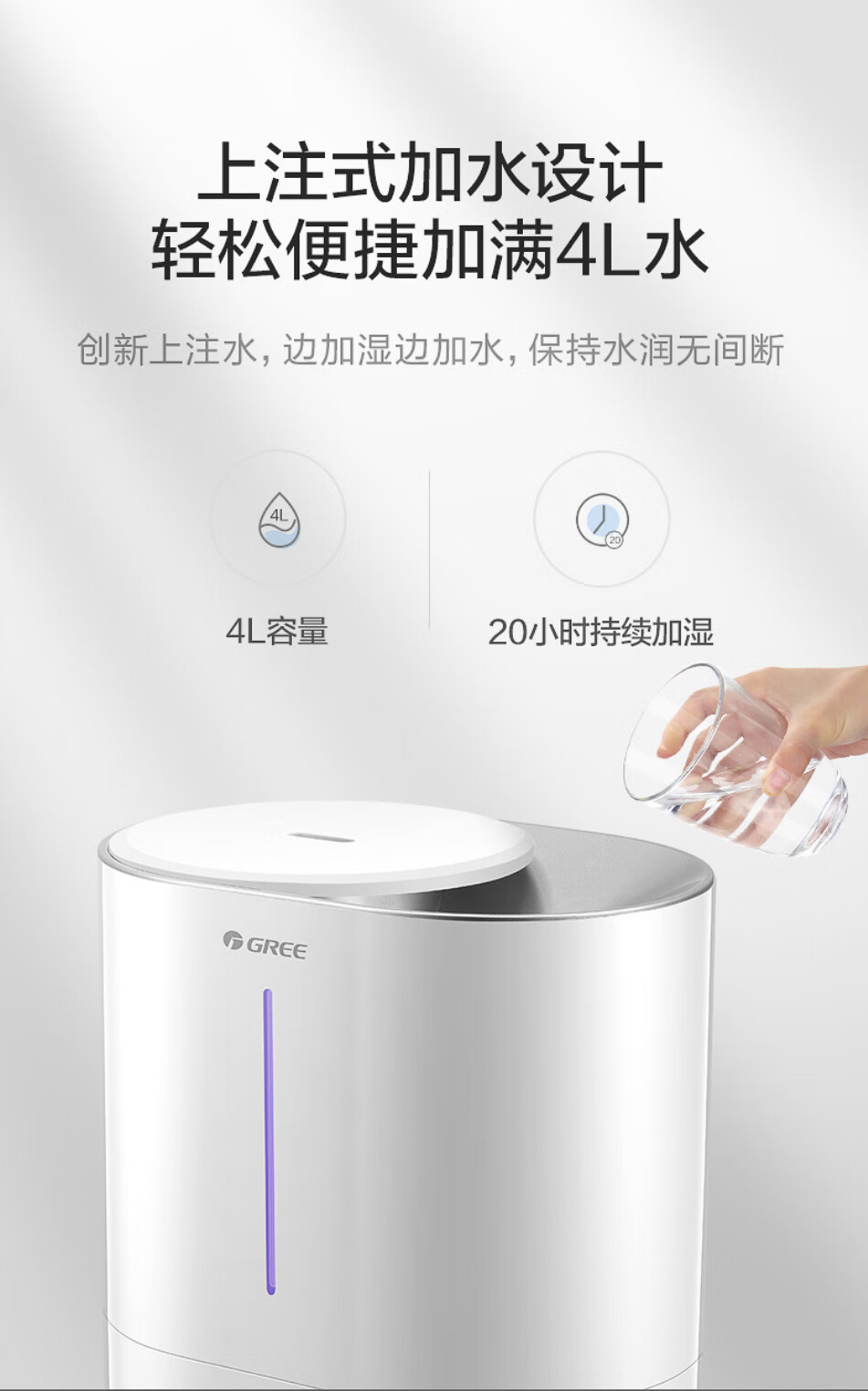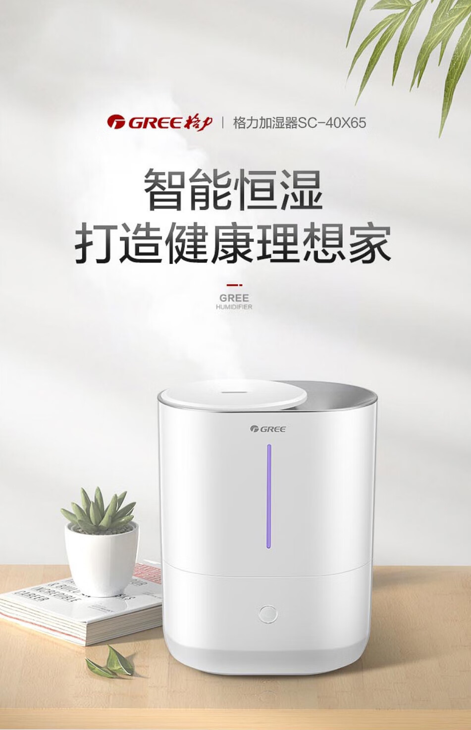 家用电器  > 生活电器  > 加湿器  >  格力/GREE  >  格力(GREE)加湿器 4L智能恒湿办公室家用加湿 便捷式上加水大容量双重防漏SC-40X65(白)【ZMD安心系列】 SC-40X65/台