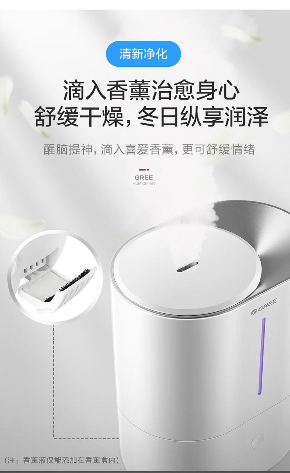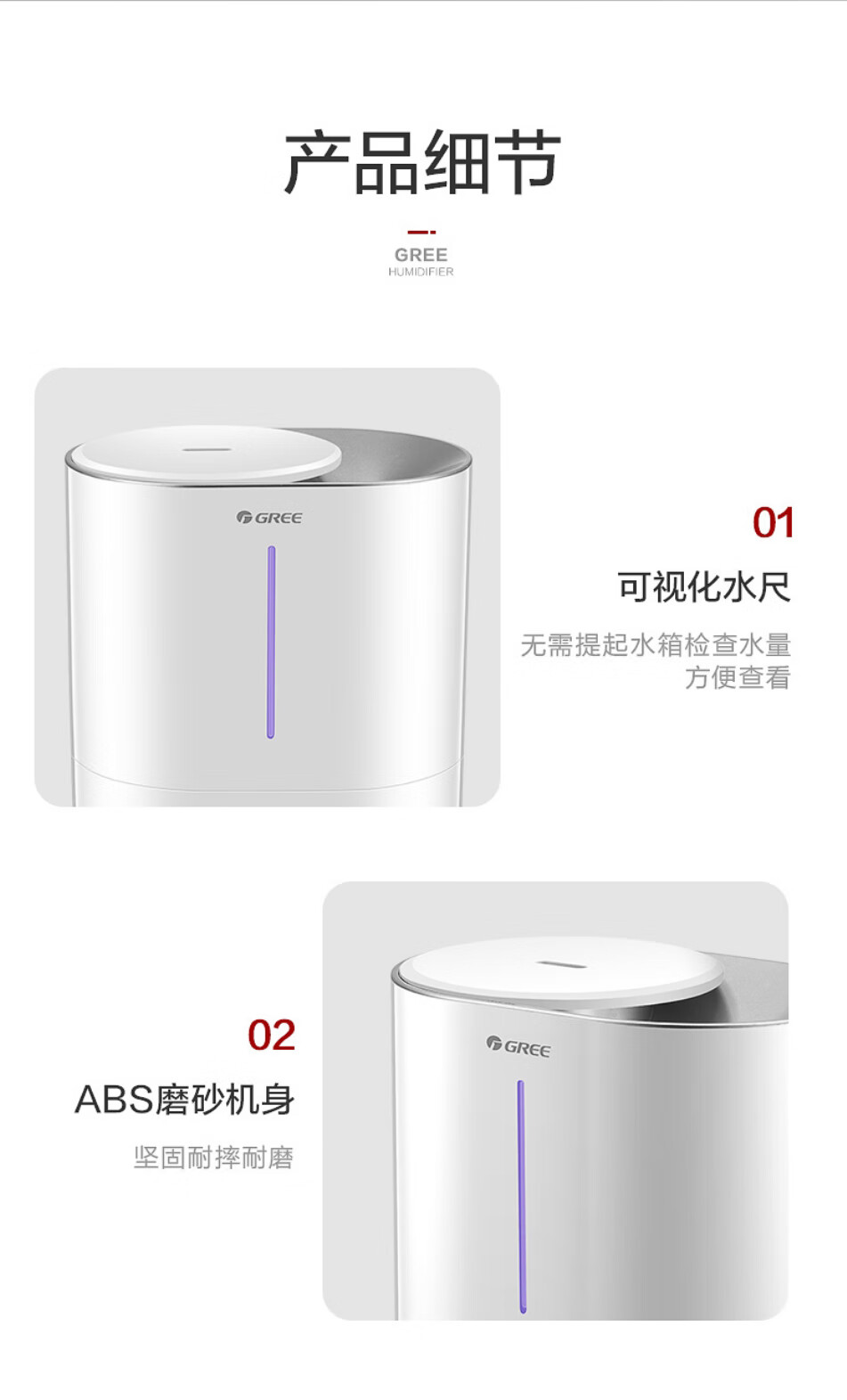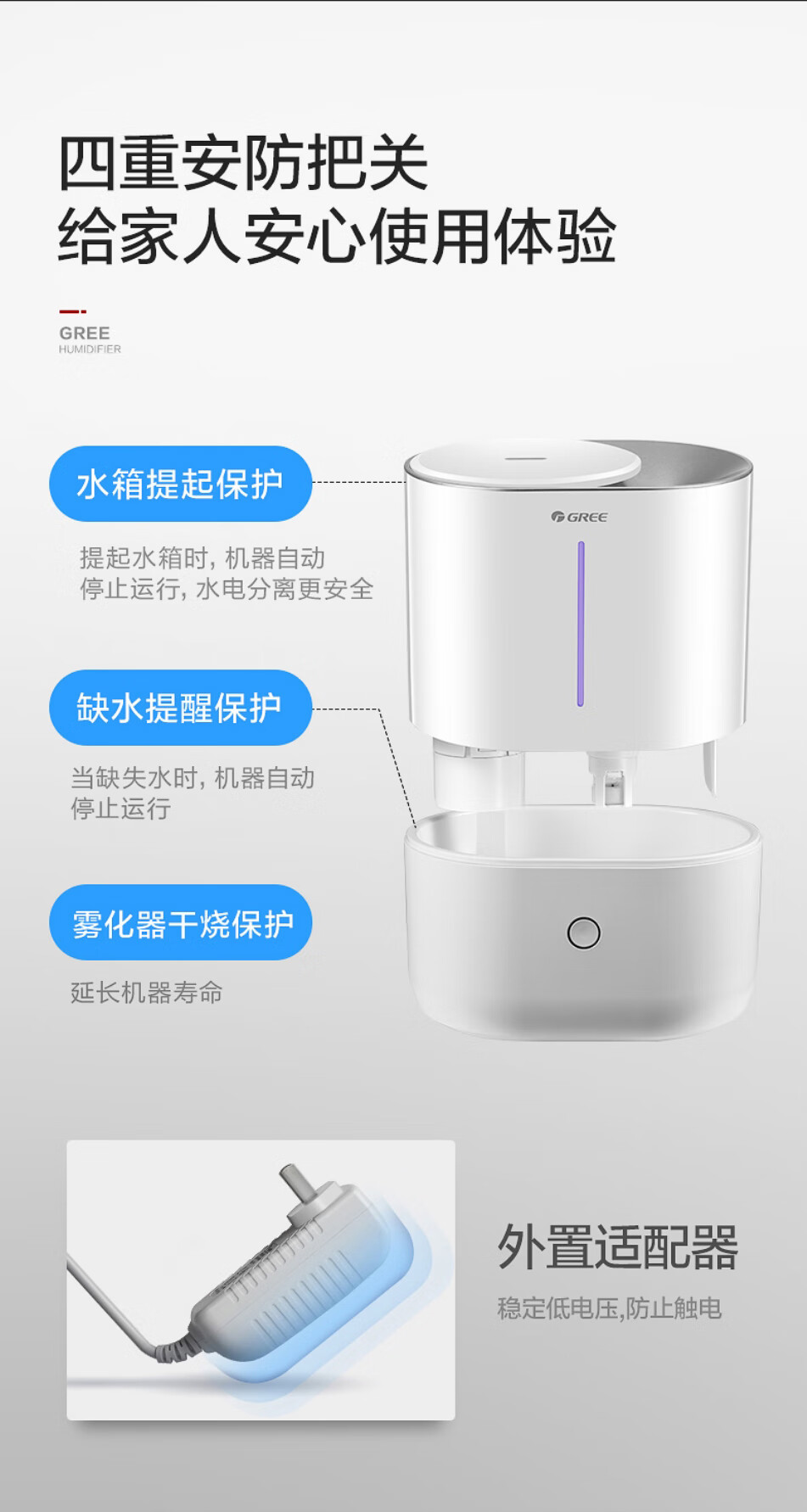 家用电器  > 生活电器  > 加湿器  >  格力/GREE  >  格力(GREE)加湿器 4L智能恒湿办公室家用加湿 便捷式上加水大容量双重防漏SC-40X65(白)【ZMD安心系列】 SC-40X65/台