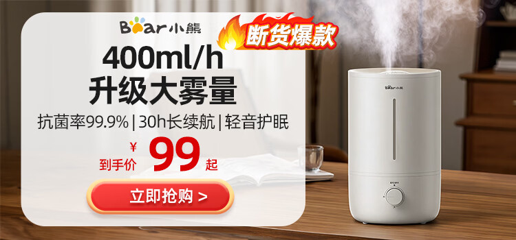 家用电器  > 生活电器  > 加湿器  >  小熊/Bear  >  小熊(Bear)加湿器家用卧室 桌面大雾量办公室空调房轻音 母婴幼儿空气净化抑菌加湿器小型 JSQ-C45U1年会礼品 JSQ-C45U1/台
