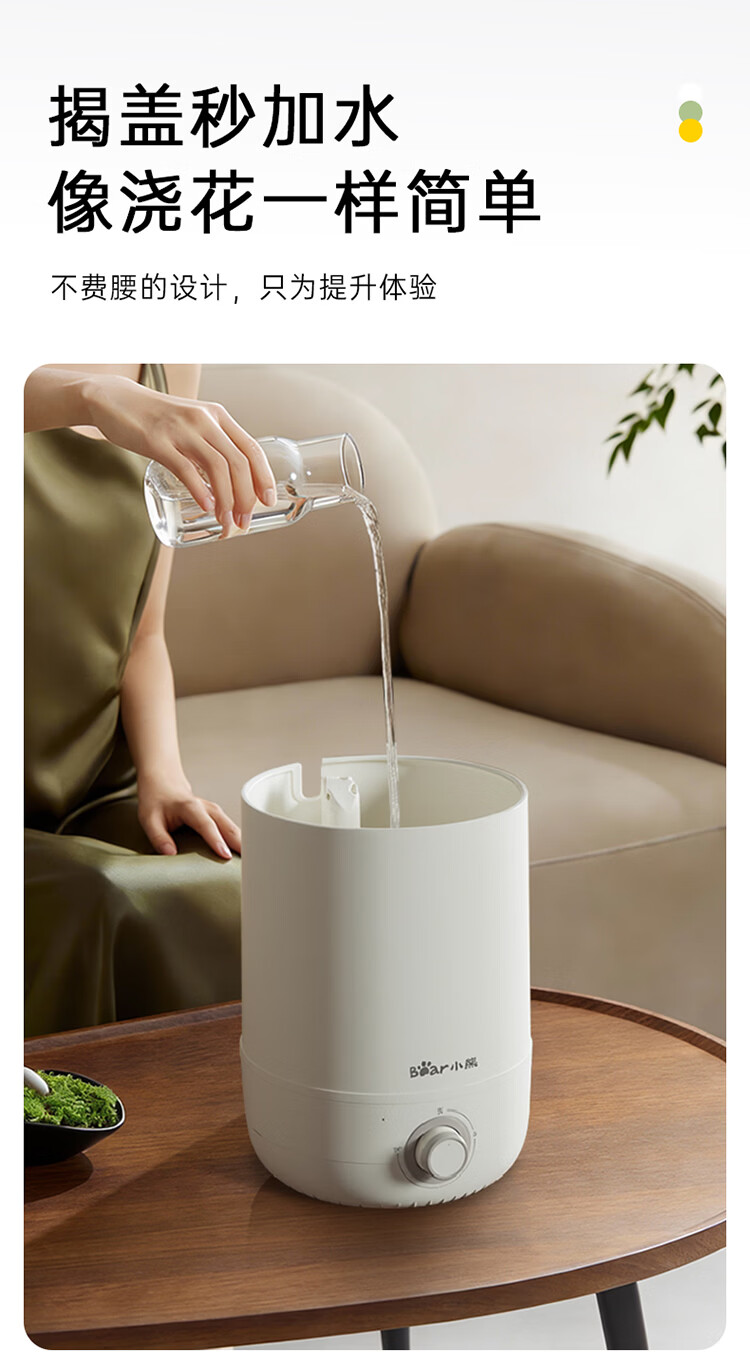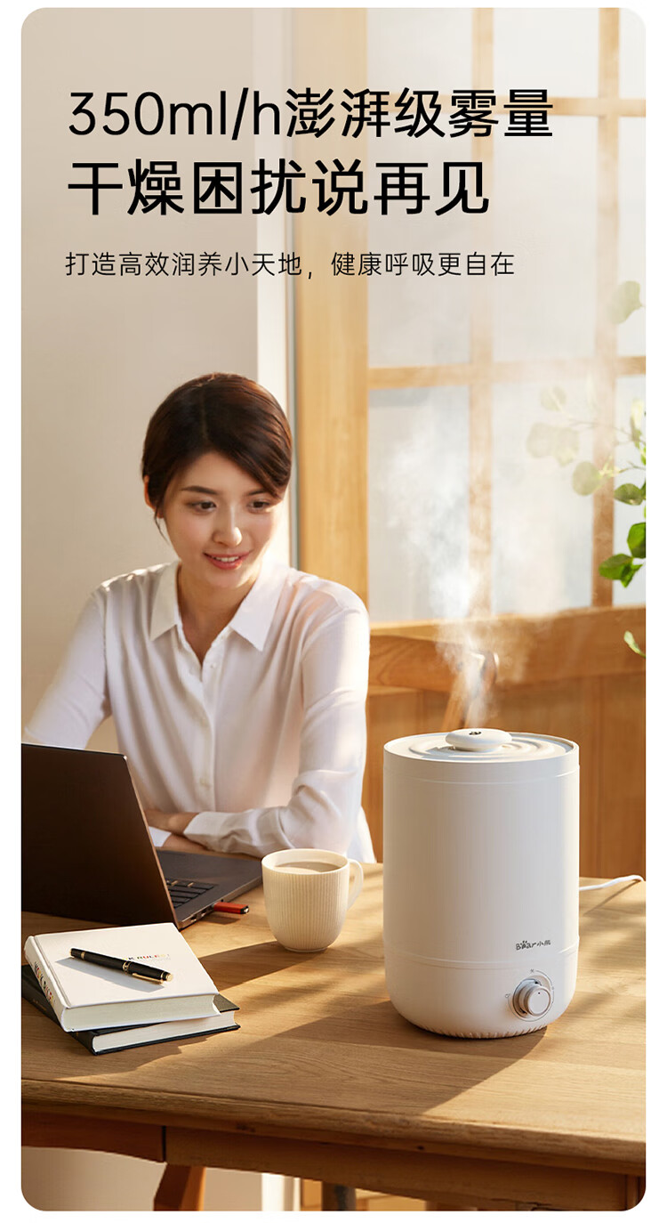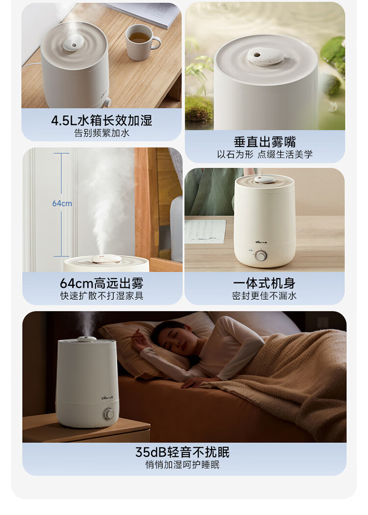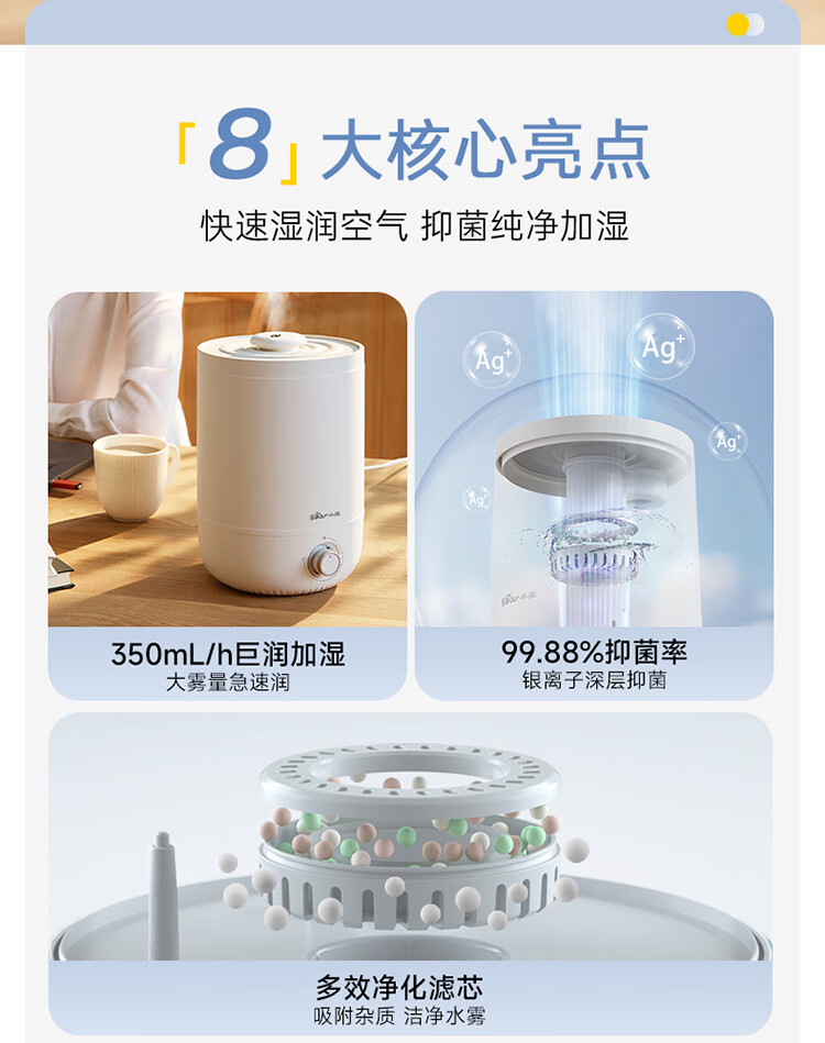 • 商品名称:小熊(Bear)加湿器家用卧室 桌面大雾量办公室空调房轻音 母婴幼儿空气净化抑菌加湿器小型 JSQ-C45U1年会礼品 JSQ-C45U1/台
