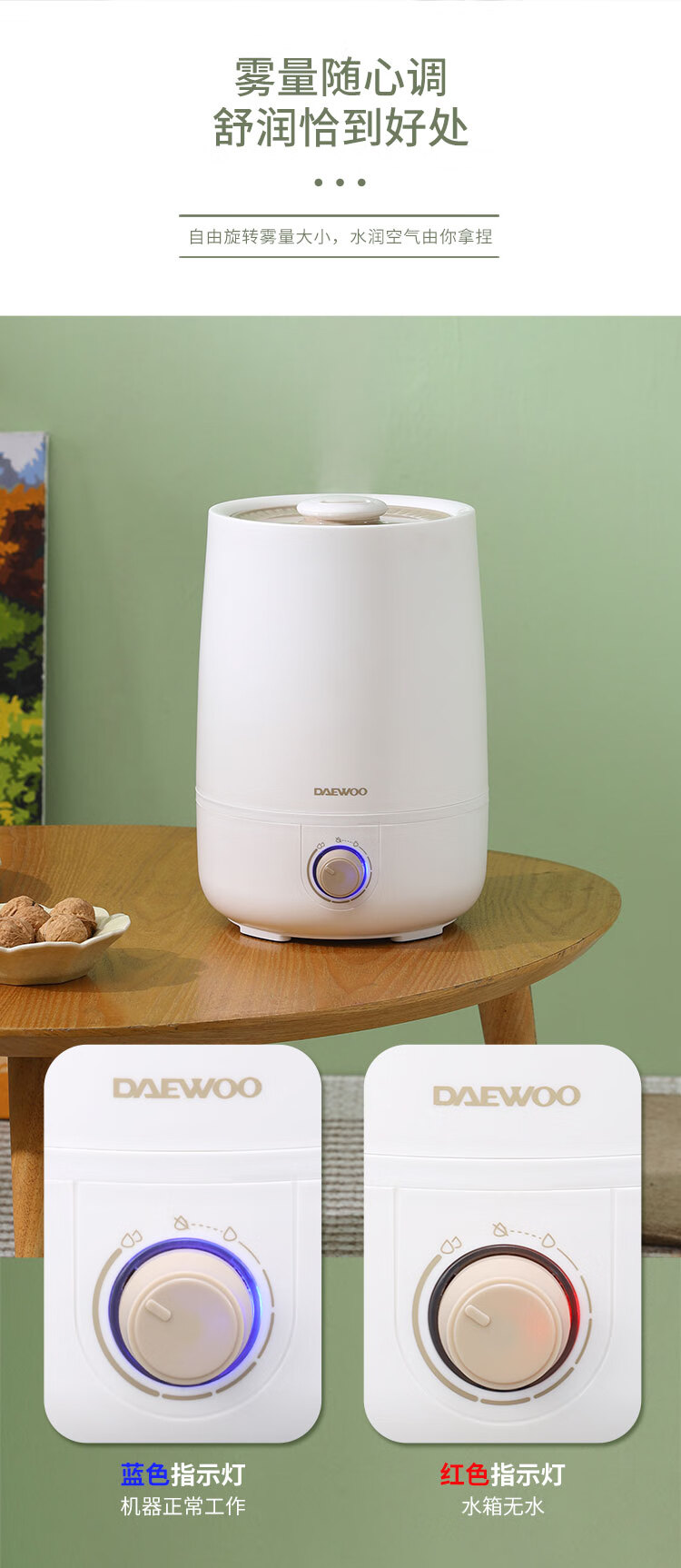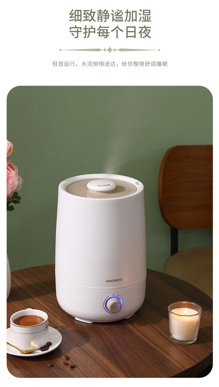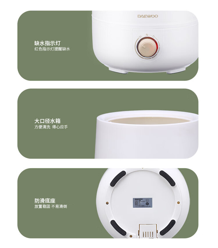 • 商品名称:大宇(DAEWOO)加湿器家用宿舍卧室孕妇婴儿大雾量空气加湿器 DYJS-Q01(升级版) DYJS-Q01/台