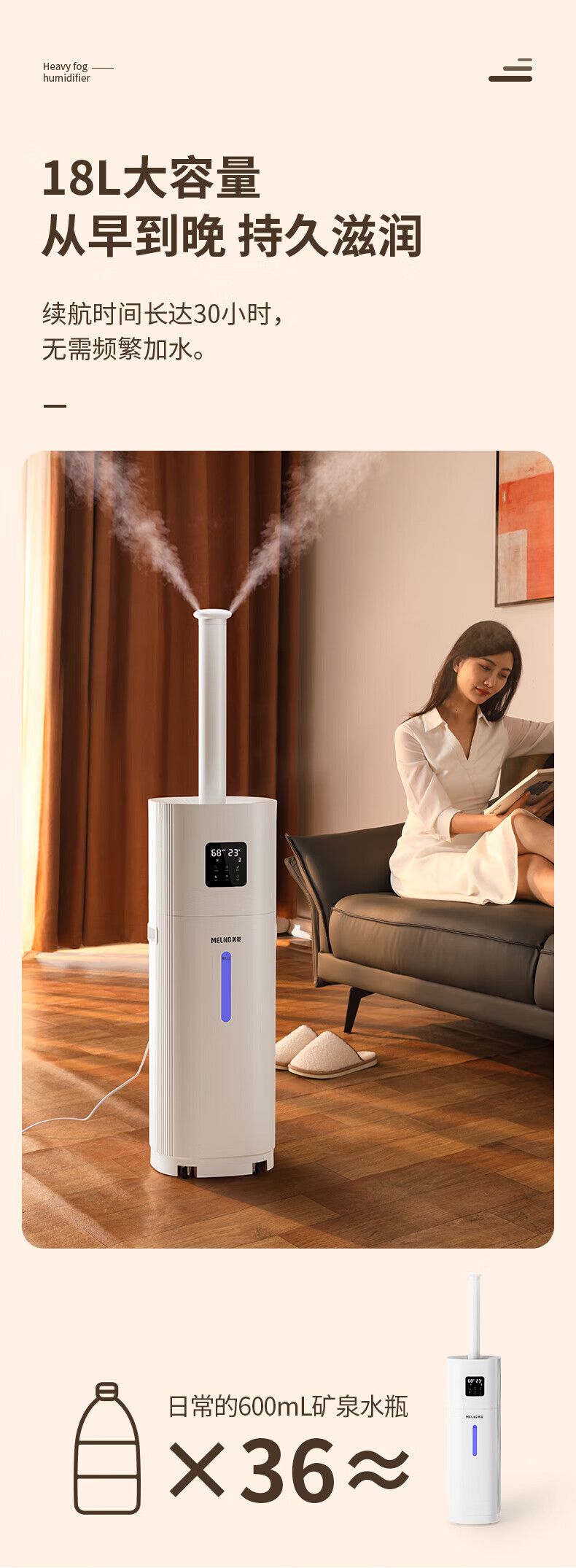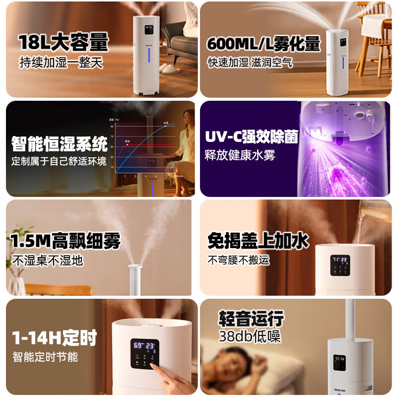 • 商品名称:美菱(MeiLing)落地式加湿器空气加湿器落地式上加水18L 卧室轻音除菌杀菌增湿 UV杀菌恒湿款MH-L118 MH-L118/台