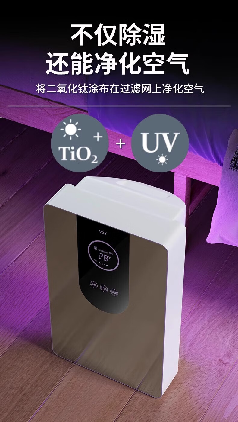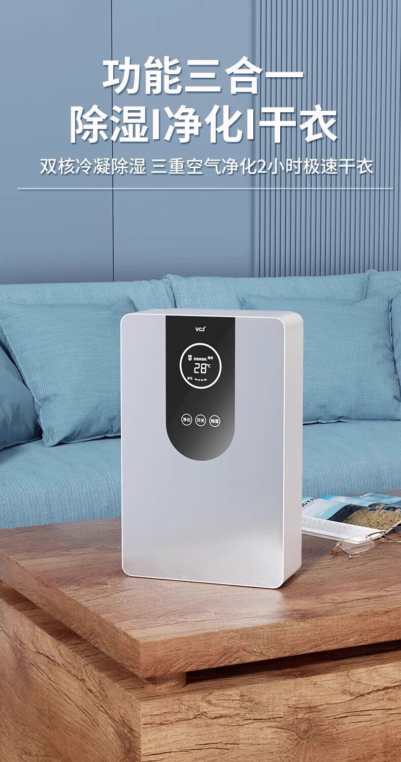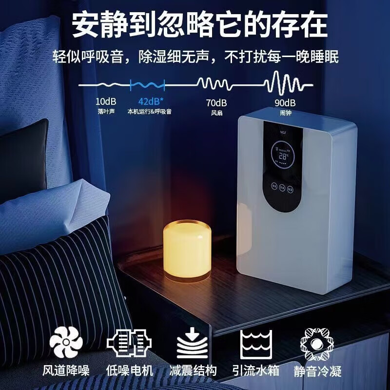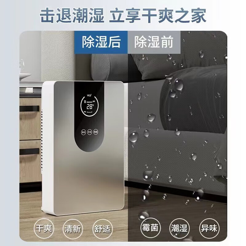 • 商品名称:VCJ除湿机家用抽湿机卧室内卫生间浴室客厅地下室抽回南天防潮吸除湿神器吸烟防霉除味辅助干衣 1.4L SY-CS01A/台