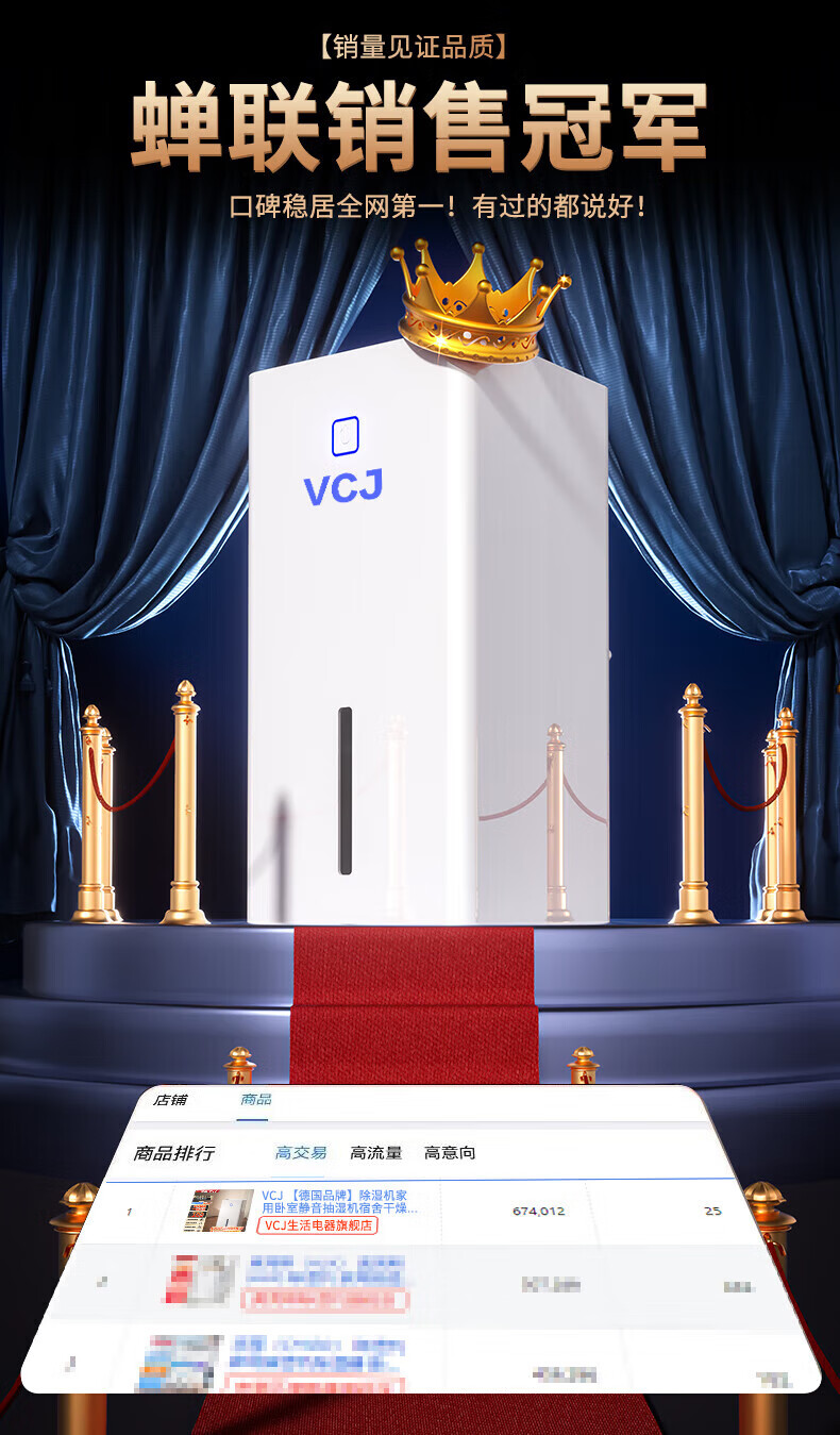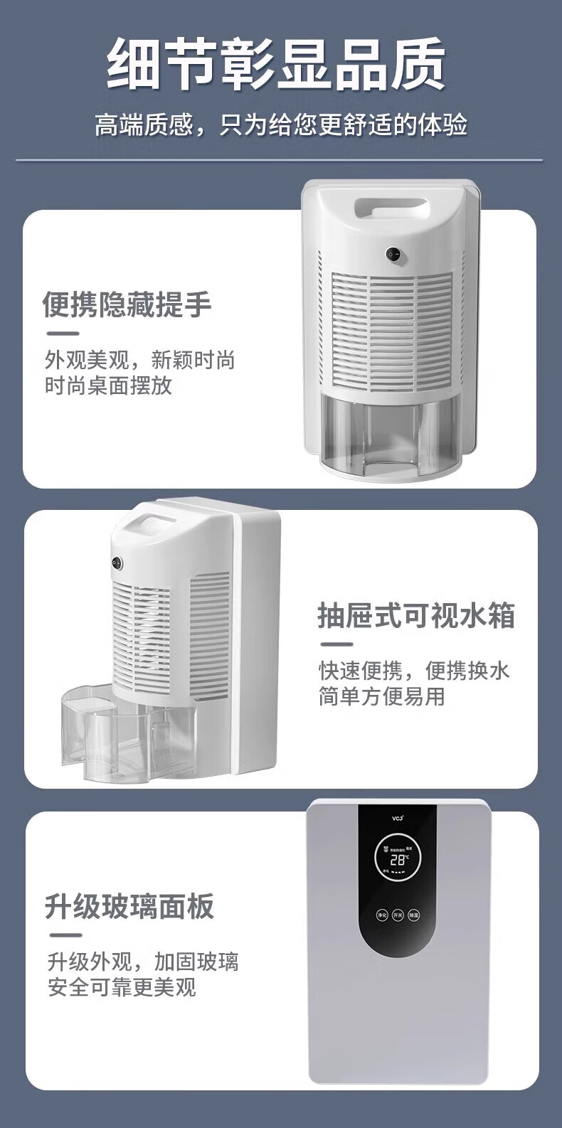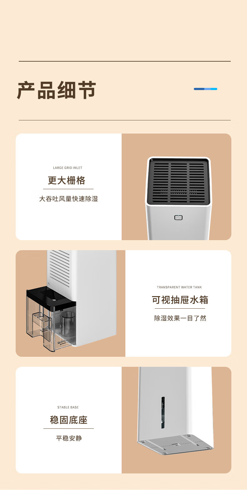• 商品名称:VCJ除湿机家用抽湿机卧室内卫生间浴室客厅地下室抽回南天防潮吸除湿神器吸烟防霉除味辅助干衣 1.4L SY-CS01A/台