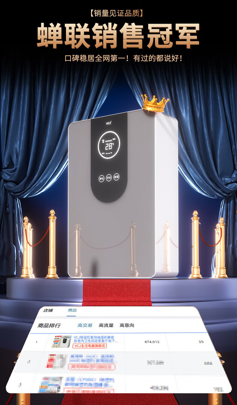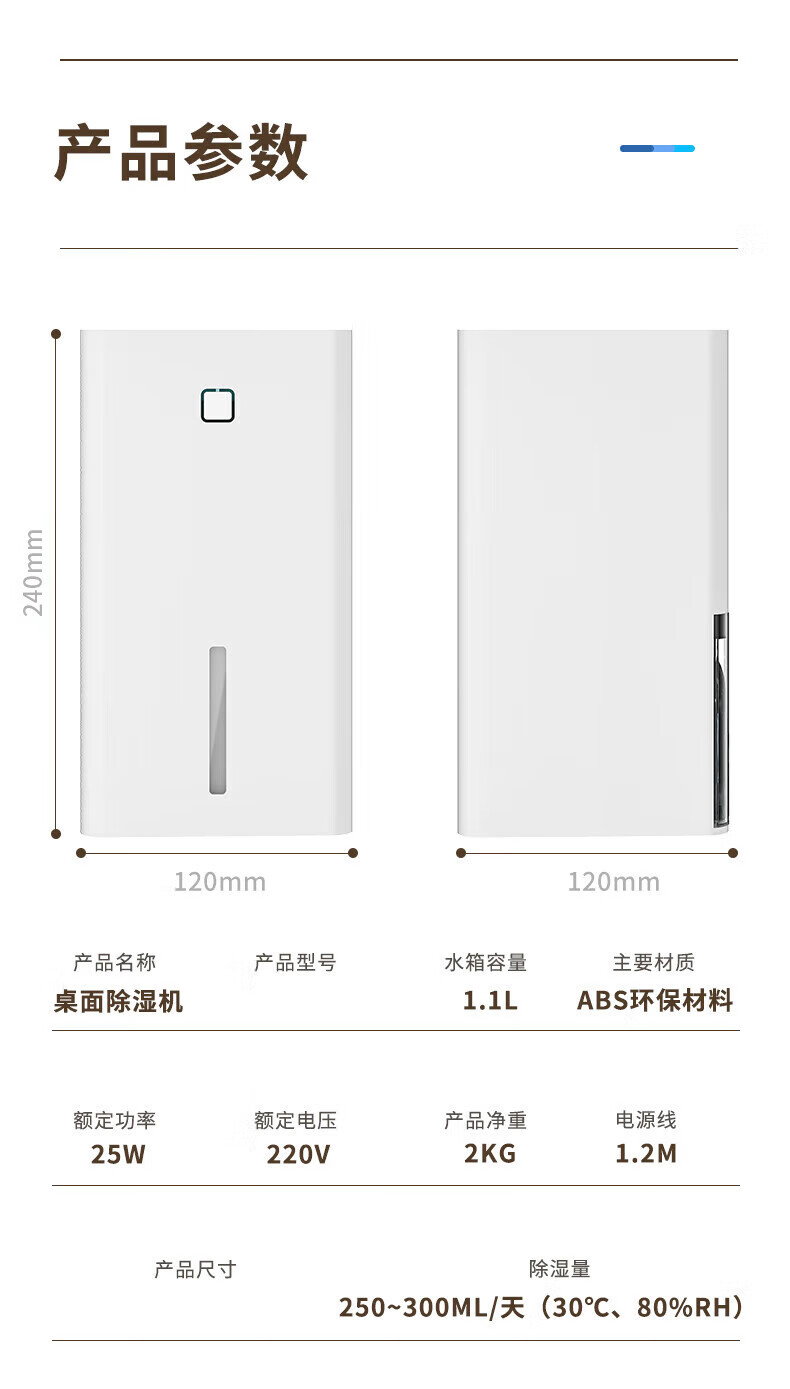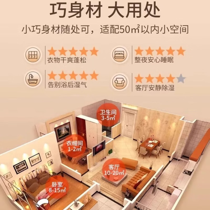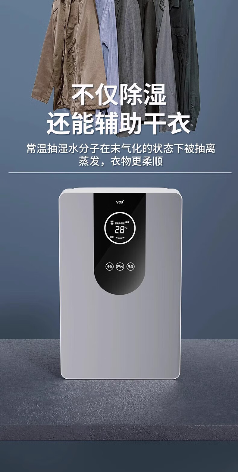 • 商品名称:VCJ除湿机家用抽湿机卧室内卫生间浴室客厅地下室抽回南天防潮吸除湿神器吸烟防霉除味辅助干衣 1.4L SY-CS01A/台