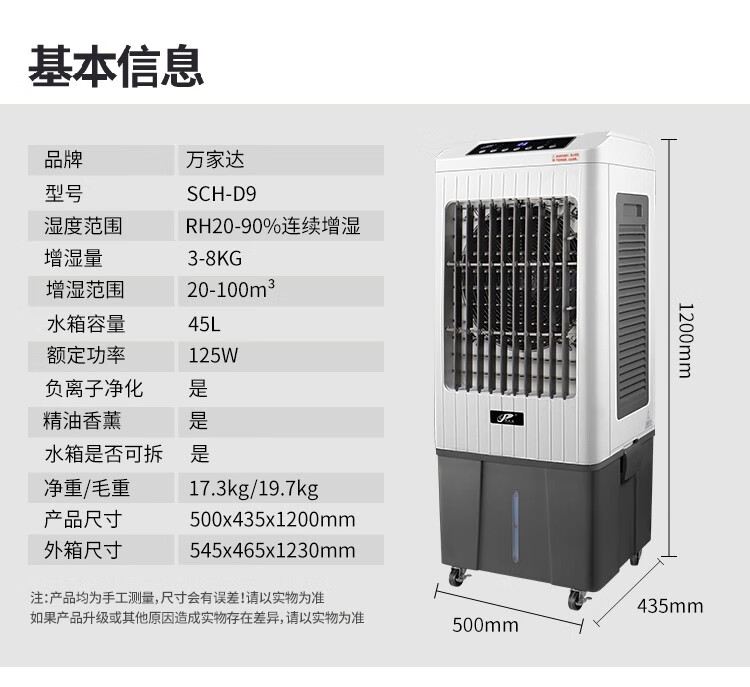 • 商品名称:万家达无雾湿膜加湿器工业大容量商用办公车间机房医药实验室加湿机家用静音空气净化增湿器SCH-D9 SCH-D9/个