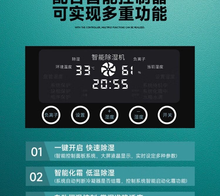 • 商品名称:朗力信除湿机大功率工业仓库商用干燥抽湿机地下室车间防潮吸湿器 90L(内置水箱) LLX-C/台