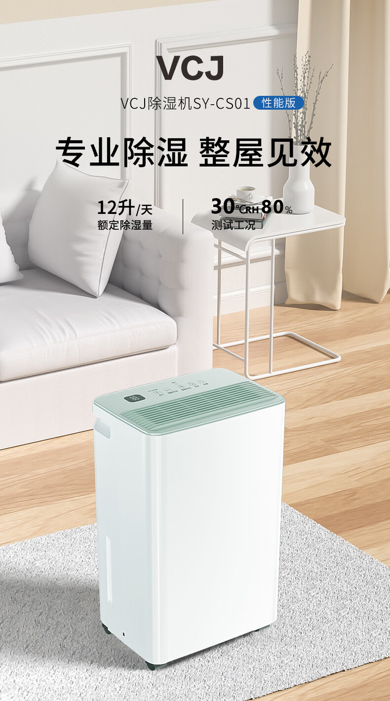家用电器  > 生活电器  > 除湿机  >  VCJ  >  VCJ家用轻音除湿机回南天地下室卧室干衣抽湿器去湿防潮宿舍除湿神器12L/天 40-70㎡ (全屋除湿) SY-CS01/台