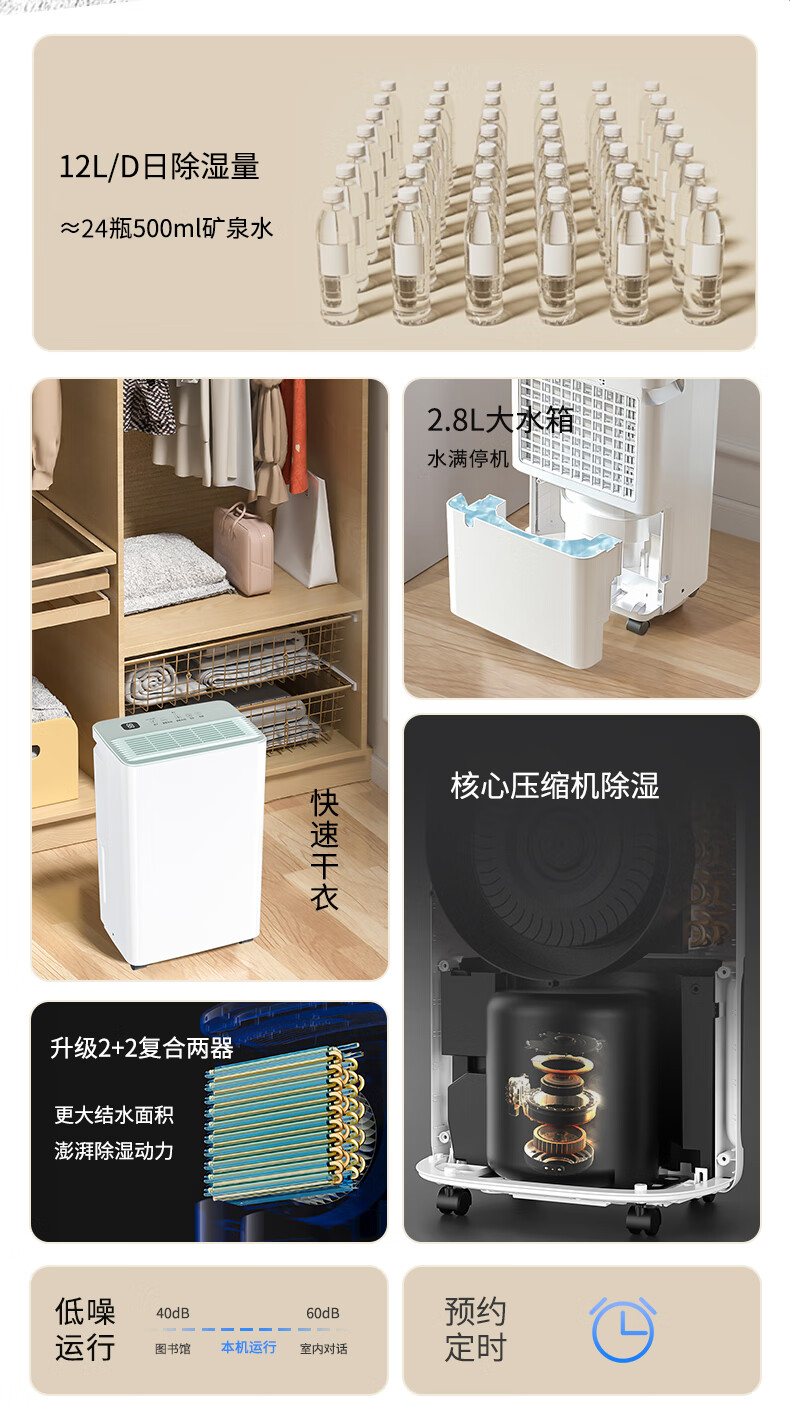 • 商品名称:VCJ家用轻音除湿机回南天地下室卧室干衣抽湿器去湿防潮宿舍除湿神器12L/天 40-70㎡ (全屋除湿) SY-CS01/台