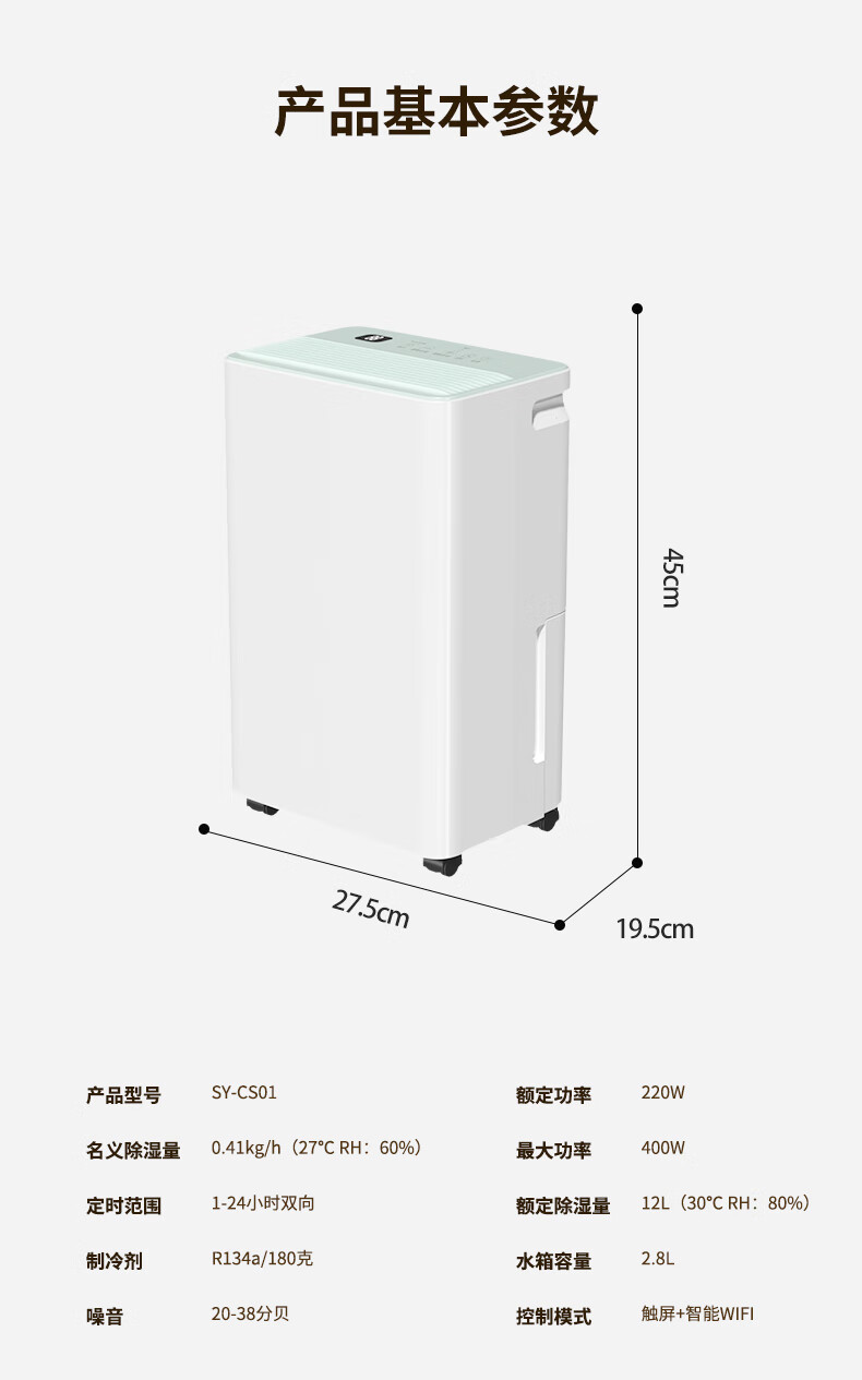 商品名称: VCJ家用轻音除湿机回南天地下室卧室干衣抽湿器去湿防潮宿舍除湿神器12L/天 40-70㎡ (全屋除湿) SY-CS01/台